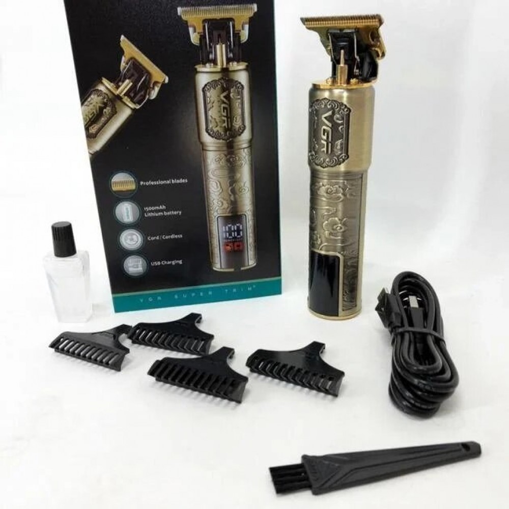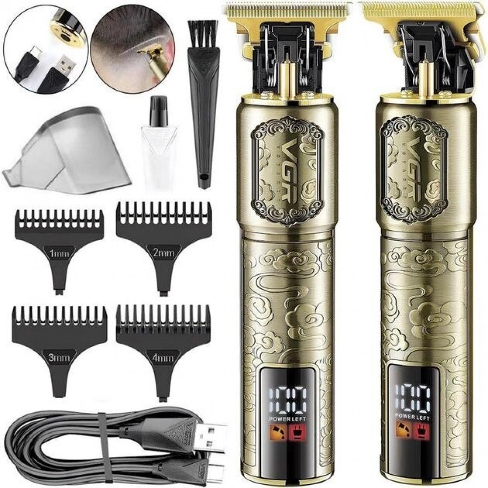 Комплект VGR 2 в 1 V-600&900 BLACK, аккумуляторная машинка для стрижки (clipper) и триммер, 10 насадок, LED