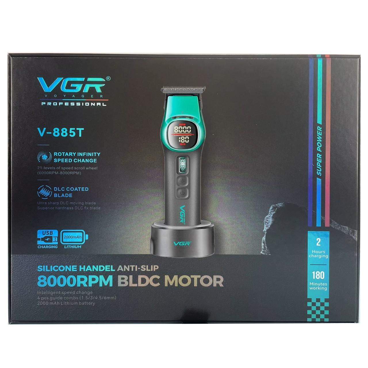Триммер VGR V-885T GREEN, 4 насадки, LED display