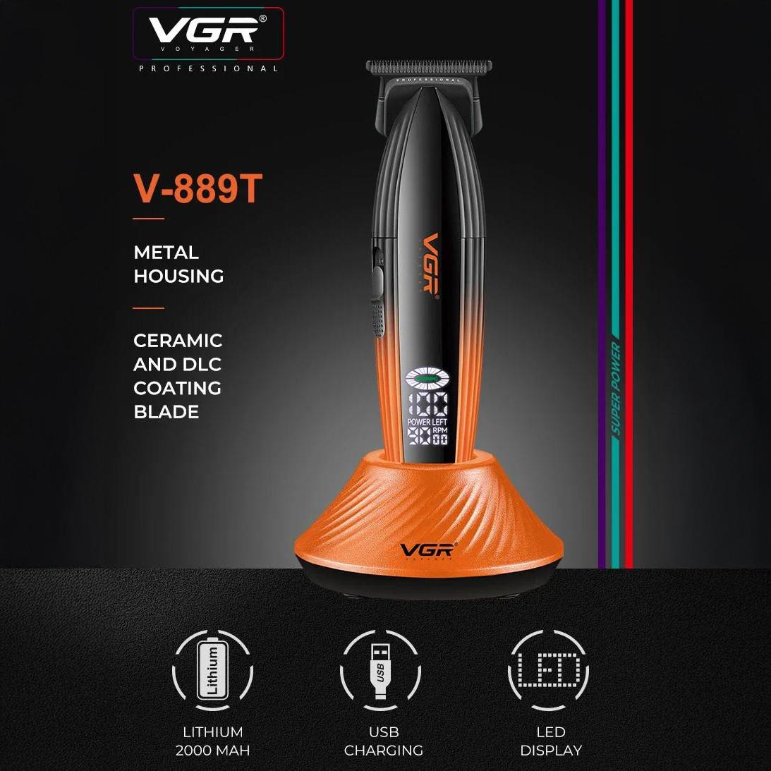 Триммер VGR V-889T, 3 насадки, LED display, 9000RPM