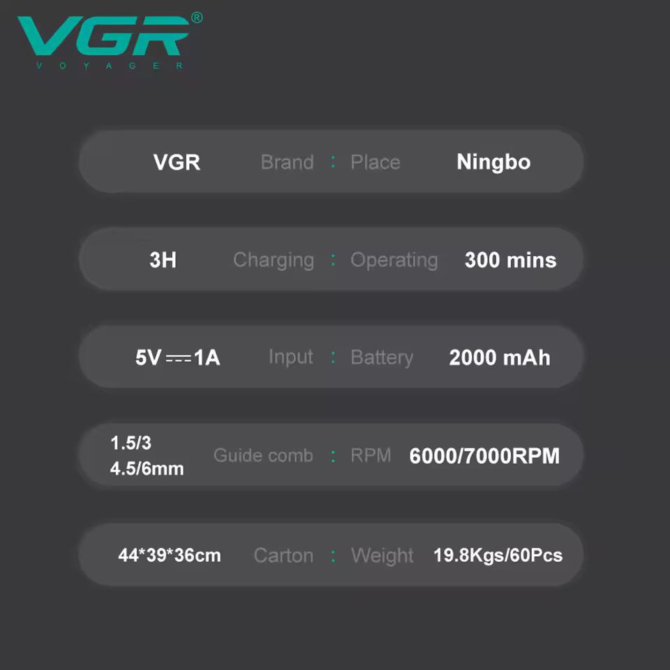 Аккумуляторная машинка для стрижки (clipper) VGR V-696, 4 насадки, LED display
