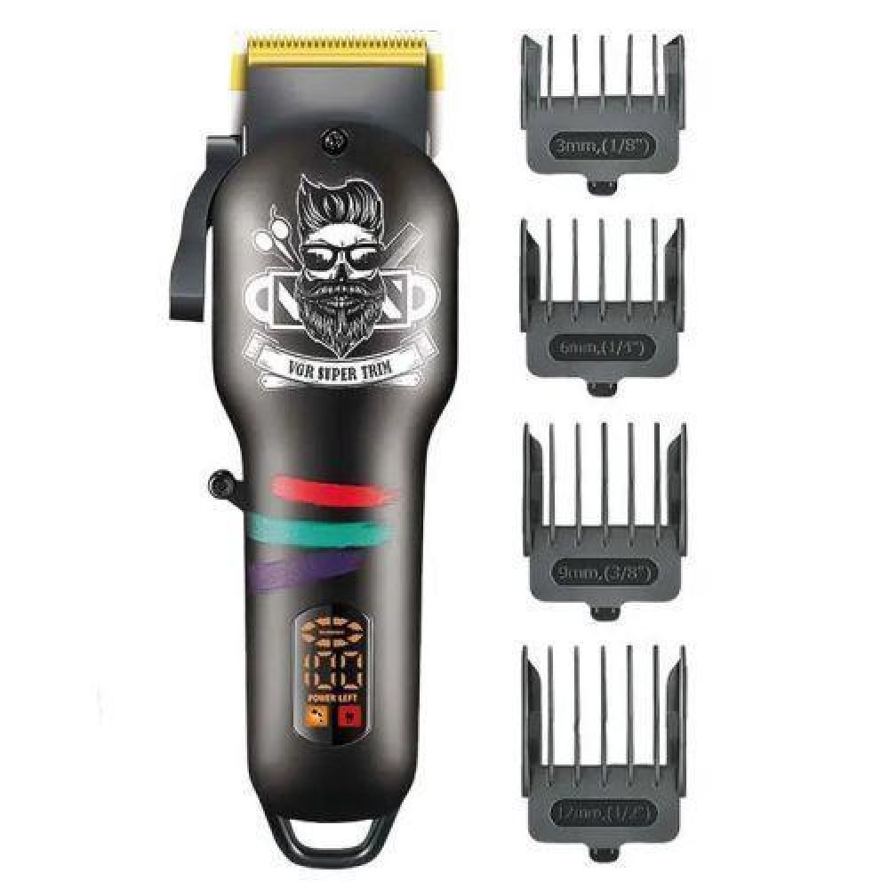 Аккумуляторная машинка для стрижки (clipper) VGR V-699 BLACK, 4 насадки, LED display
