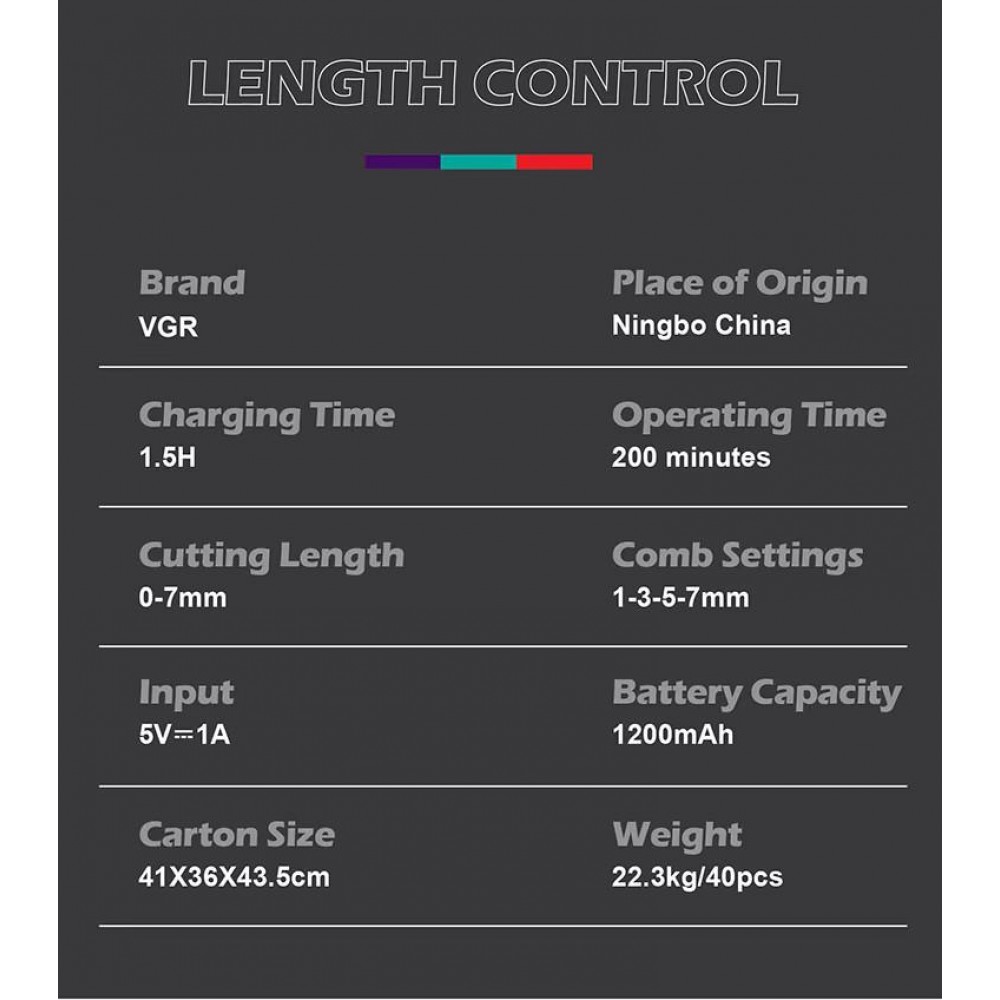 Аккумуляторная машинка для стрижки (clipper) VGR V-687, 4 насадки, LED display