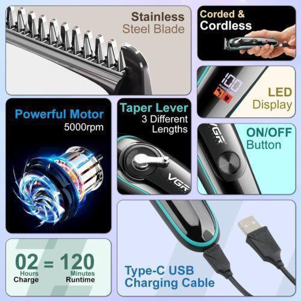 Профессиональный аккумуляторный беспроводной триммер-стилизатор VGR 5W IPX6 V-105