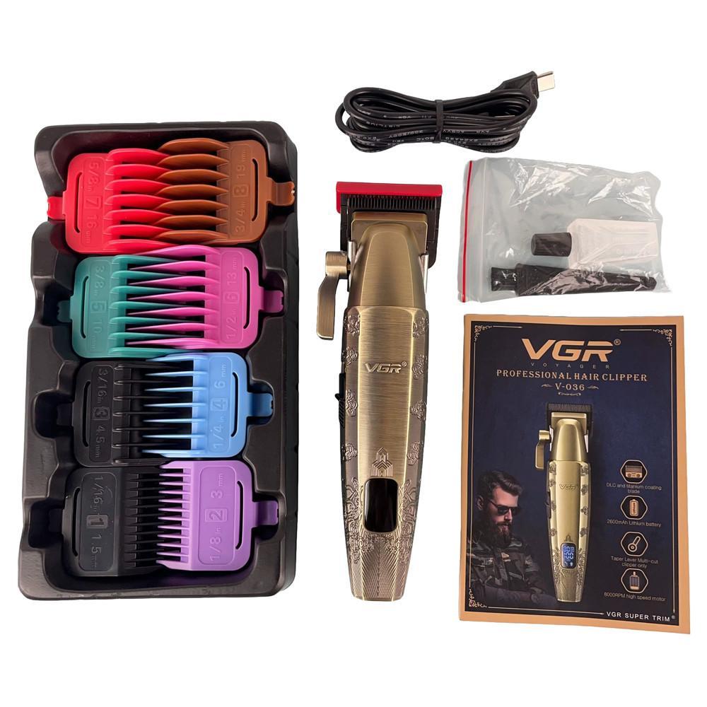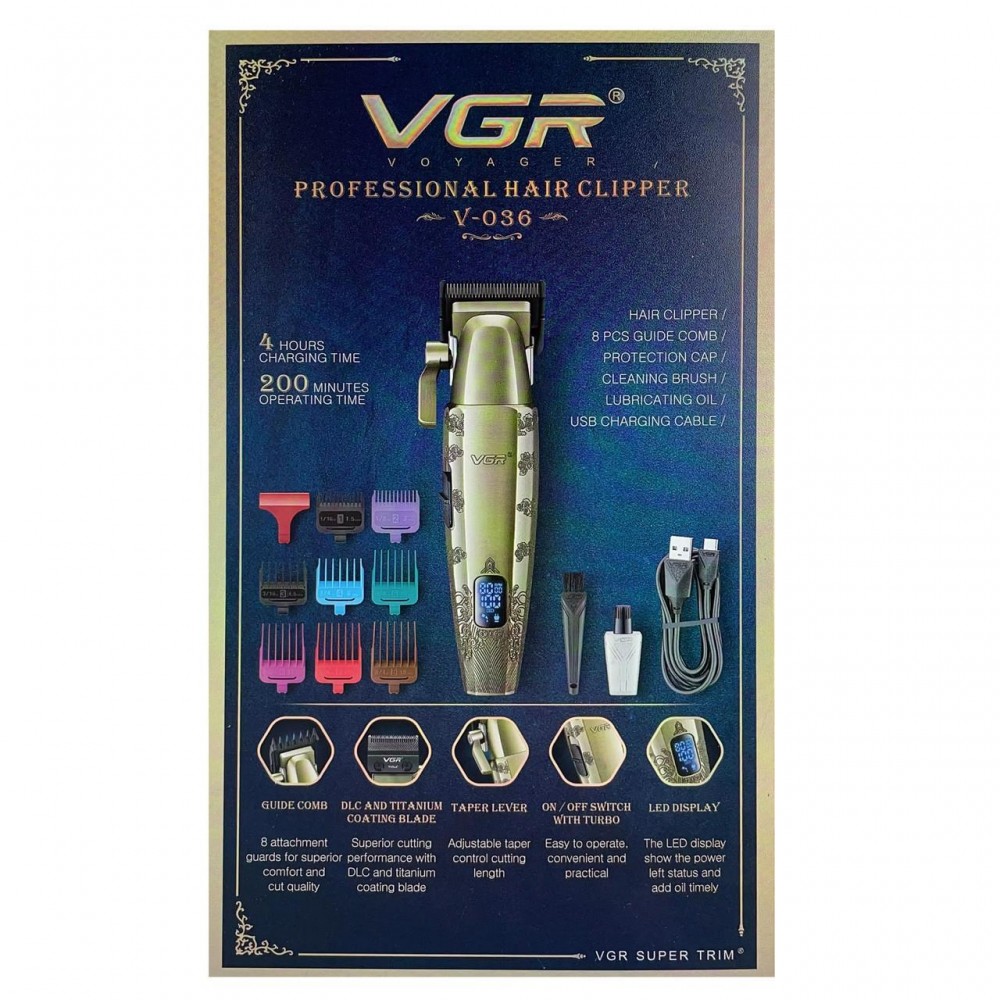 Аккумуляторная машинка для стрижки (clipper) VGR V-036, 8 насадок, LED display