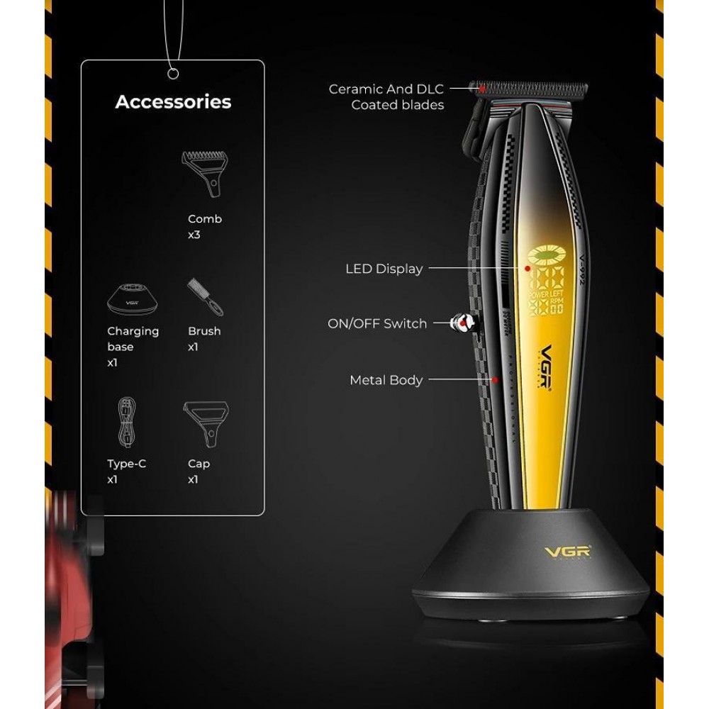 Аккумуляторная машинка для стрижки (clipper) VGR V-886C GOLD, LED display, 9000RPM