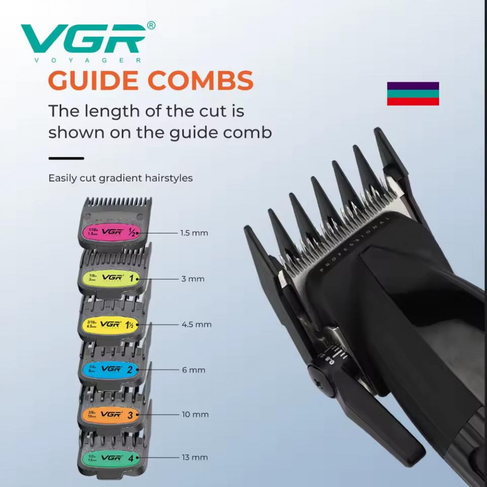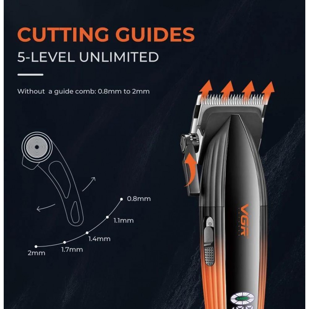 Аккумуляторная машинка для стрижки (clipper) VGR V-889C, 6 насадок, LED display, 9000RPM