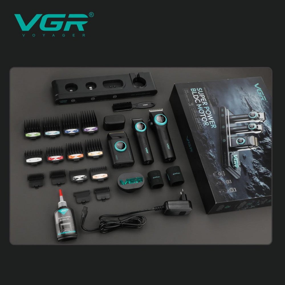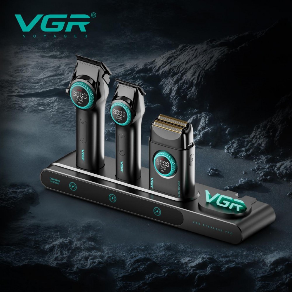 Комплект VGR STEPLERSS PRO 3 IN 1 BLACK, машинка для стрижки (Clipper), триммер, электробритва