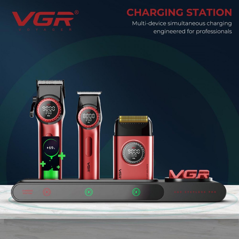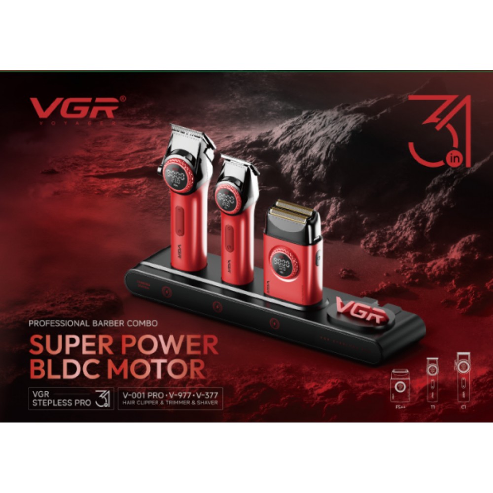 Комплект VGR STEPLERSS PRO 3 IN 1 RED, машинка для стрижки (Clipper), триммер, электробритва