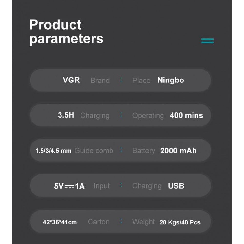 Триммер VGR V-987 — это надежный и стильный инструмент, который обеспечит качественный уход за волосами и бородой в любых условиях.