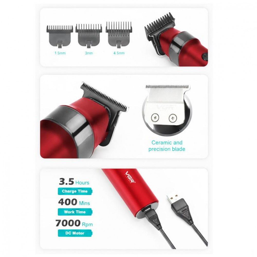 Триммер VGR V-987 — это профессиональный прибор для стрижки волос и ухода за бородой, предназначенный как для домашнего использования, так и для салонов красоты. Он сочетает в себе современный дизайн, высокую производительность и удобство эксплуатации.