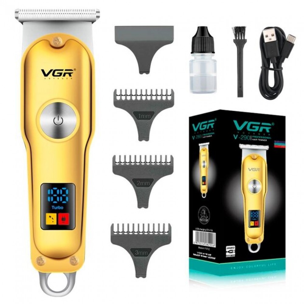 Триммер VGR V-299 BLACK, 4 насадки, 9000RPM, 2000 mAh, 5 уровней скорости, LED display
