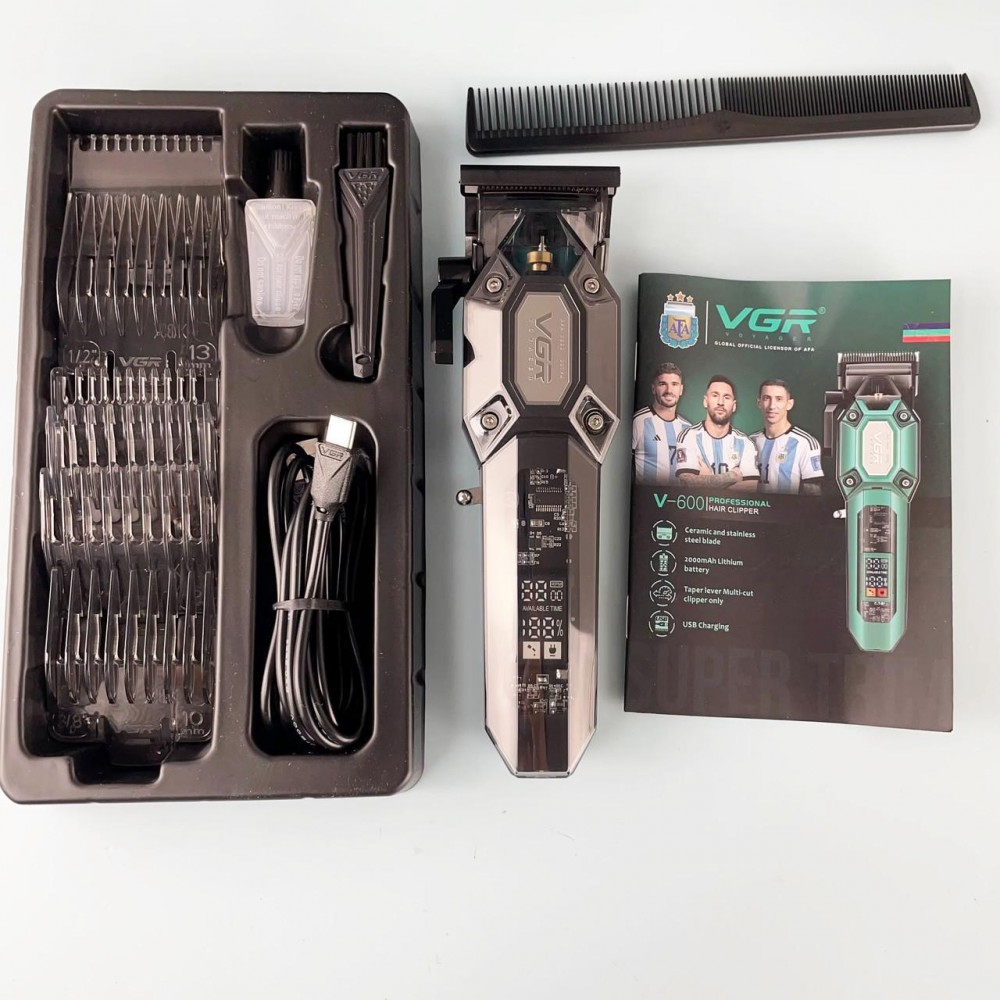 Аккумуляторная машинка для стрижки (clipper) VGR V-668, VECTOR MOTOR 8000-11000 RPM, 6 насадок, LED display