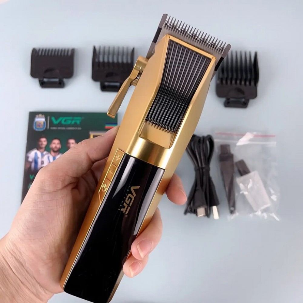 Аккумуляторная машинка для стрижки (clipper) VGR V-282, 6 насадок, LED display