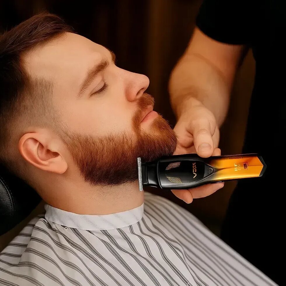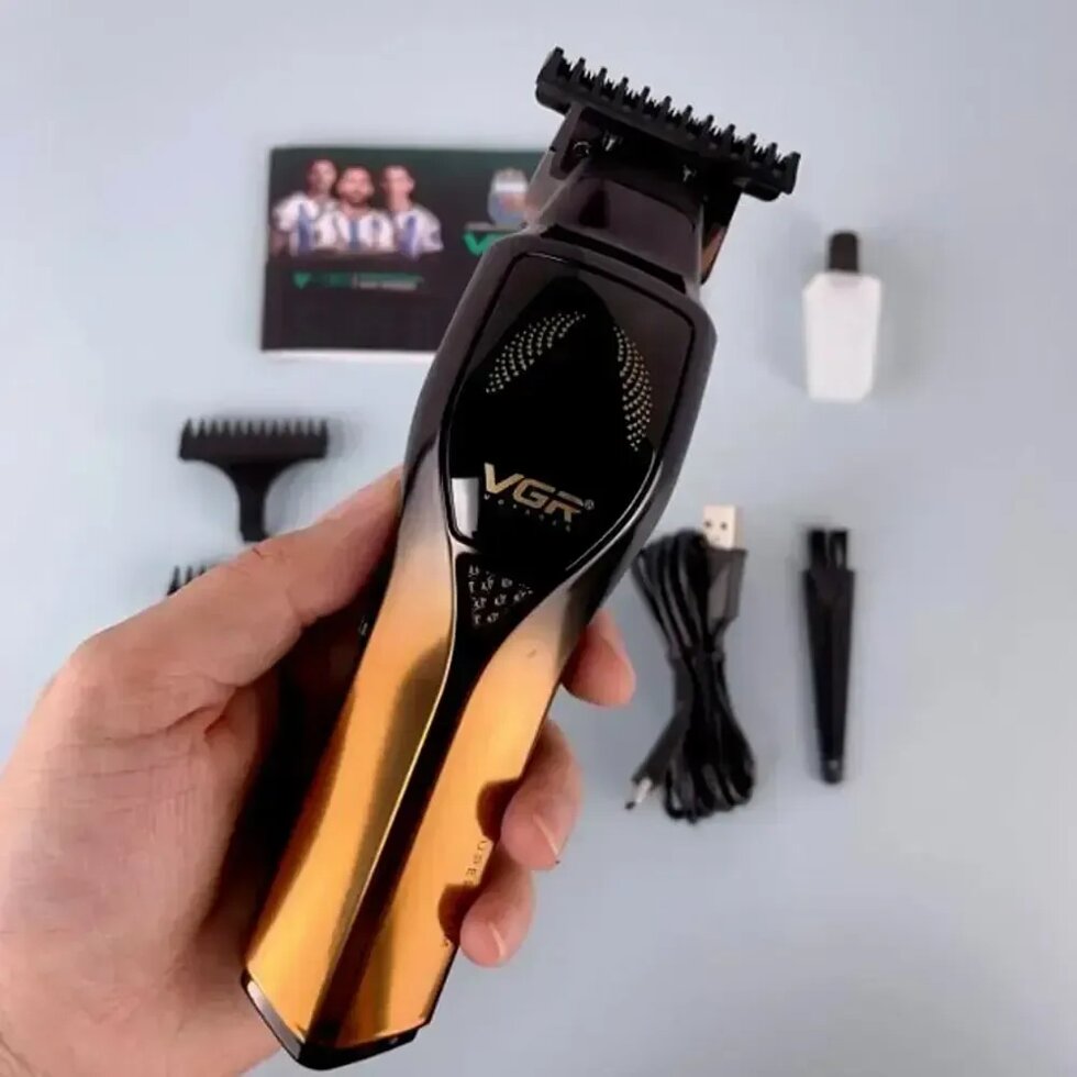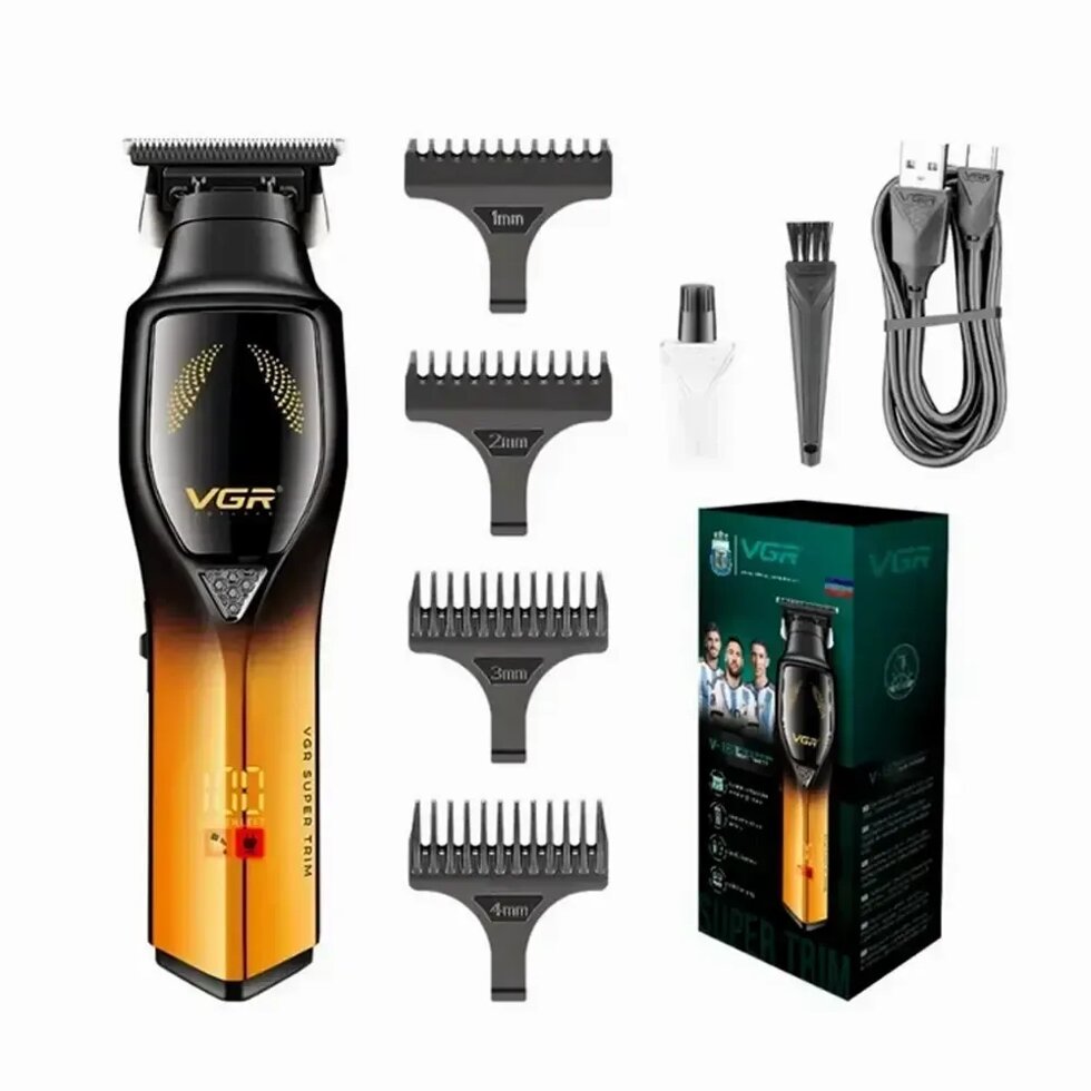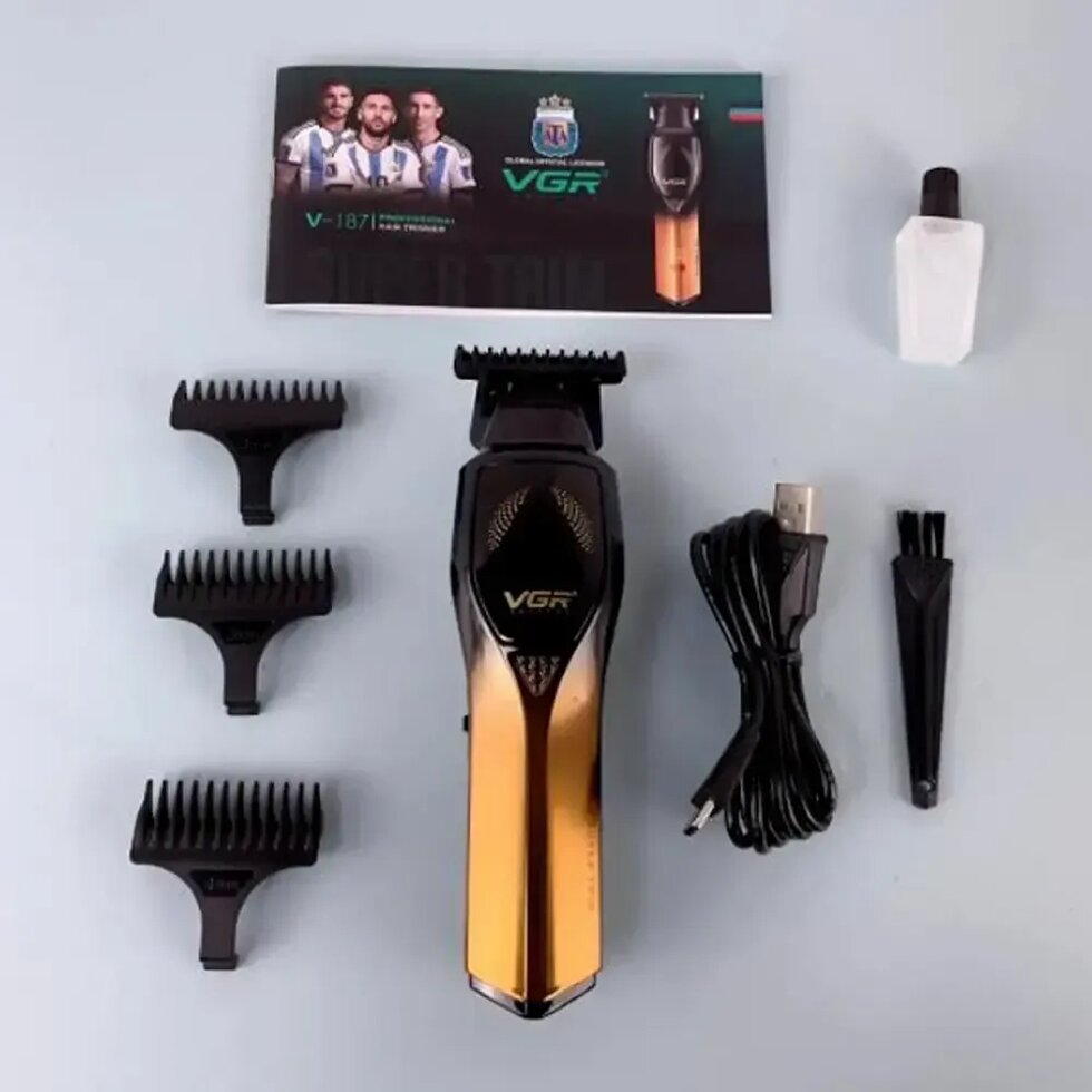 Беспроводной триммер машинка VGR V-187 для стрижки волос 4 насадки (Золотистый)