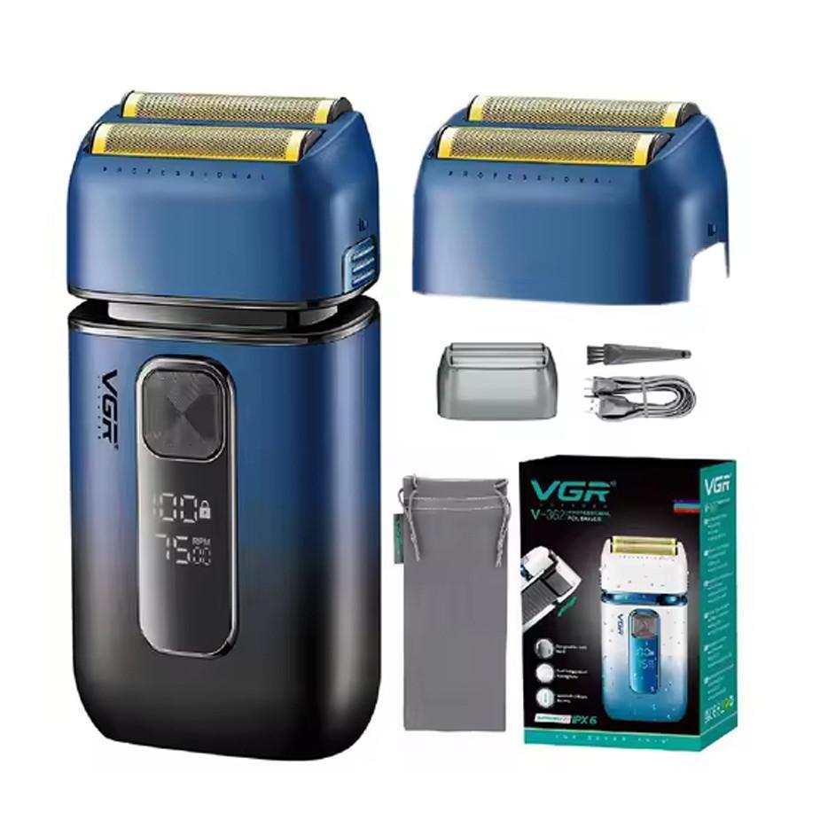 Электробритва VGR V-362 BLACK шейвер, двойное лезвие, триммер, IPX6, LED Display