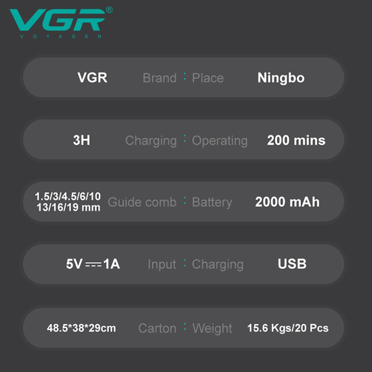 Аккумуляторная машинка для стрижки (clipper) VGR V-013 GREEN, 8 насадок, 6500 RPM, 2000 mAh, LED display