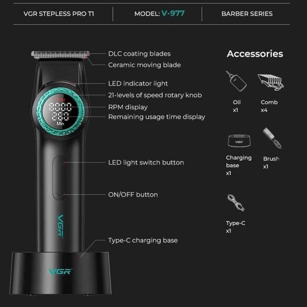 Комплект VGR 2 в 1 V-001&V-977 BLACK, аккумуляторная машинка для стрижки (clipper) и триммер