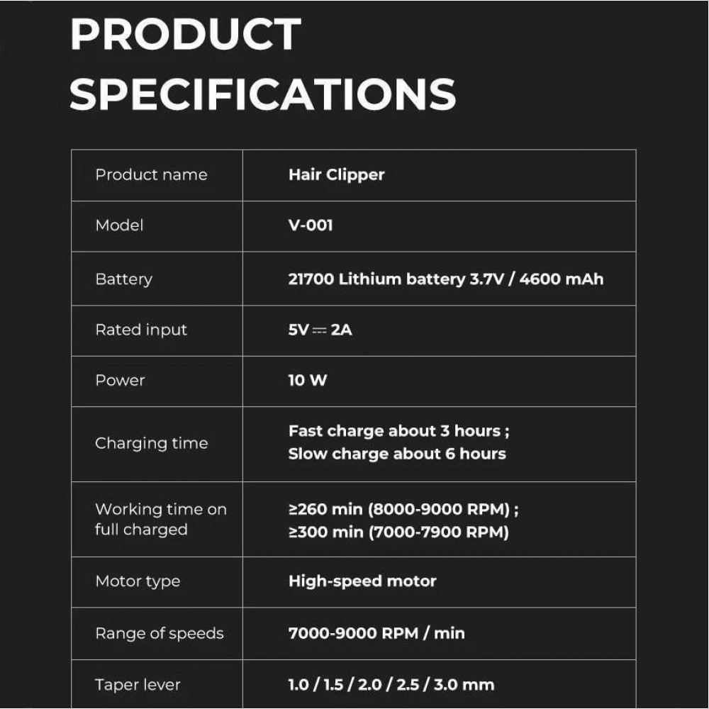Машинка (триммер) для стрижки волос и бороды T9-4, 1х18650, 4 насадки (1.5, 2, 3, 4 мм)
