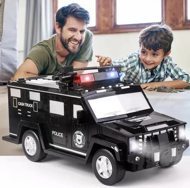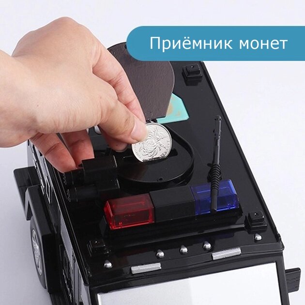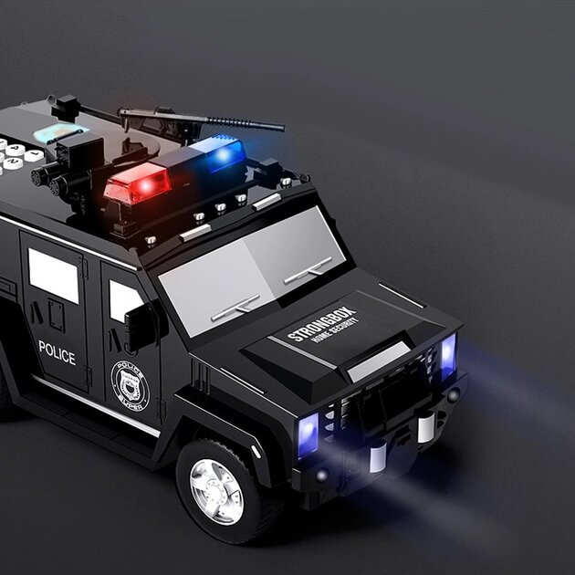 Копилка «Электронный сейф» – оригинальная, солидная вещь. Как и положено сейфу, он имеет кодовый замок и разблокировку с помощью отпечатка пальца. Без правильного кода и отпечатка копилка-сейф не откроется. Выполнен сейф в виде очень стильной машины, в которую можно не только прятать деньги, но и играть как с обычной машинкой. Машинка светится и может быть использована как ночник.