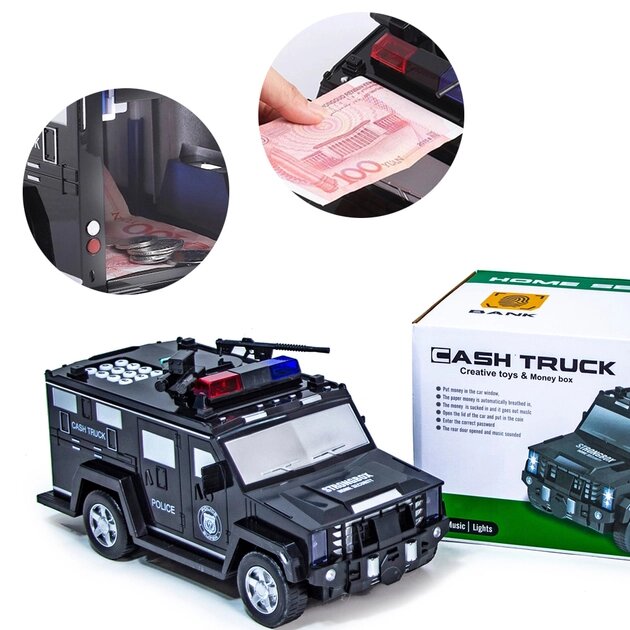Электронная машинка копилка-сейф CASH TRUCK с кодовым замком и отпечатком Hummer 6688-19
