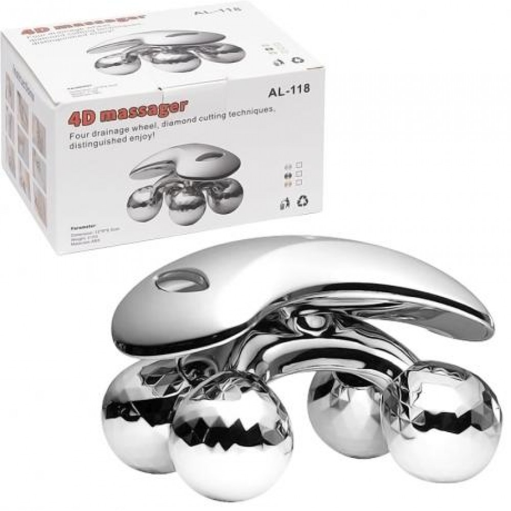 Роликовий ліфтинговий масажер 4D для обличчя і тіла обладнаний 4 сферами, які розташовані під кутом в 75 градусів. Вони здійснюють лімфодренажний масаж усього тіла, а також особи, при цьому не доставляючи ніякого дискомфорту. За допомогою масажера Ви зможете підтягнути овал обличчя, позбавити від зморшок, целюліту або другого підборіддя. Масажер можна використовувати у ванні, а також поєднувати з будь-якими кремами або маслами. Масаж не викликає алергії. Акумулятор: сонячна енергія. Матеріал: нержавіюча сталь. Розмір упаковки: 15х12х9 см, розмір масажера 12*9*8,5см