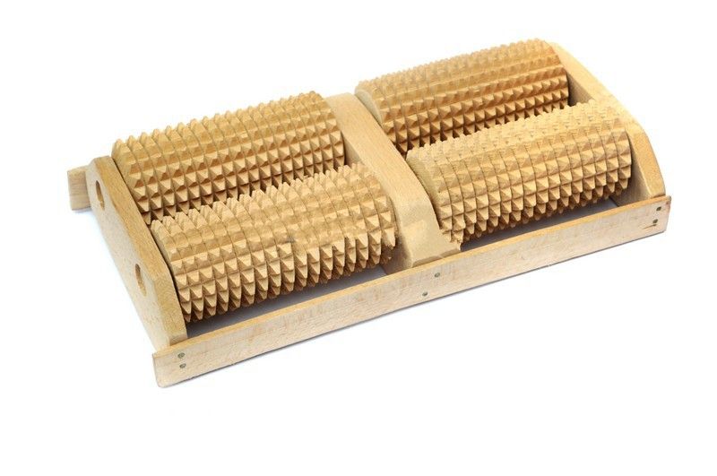 Напольный массажер для ног, выполнен из дерева твердой породы. Четыре шипованных валика закрепленные на деревянной раме, помогут снять накопившуюся за целый день усталость ног. Простой, необременительный и вполне надёжный способ следить за своим здоровьем. Применять лучше вечером, что бы к следующему дню мышцы не только расслабились, но и отдохнули