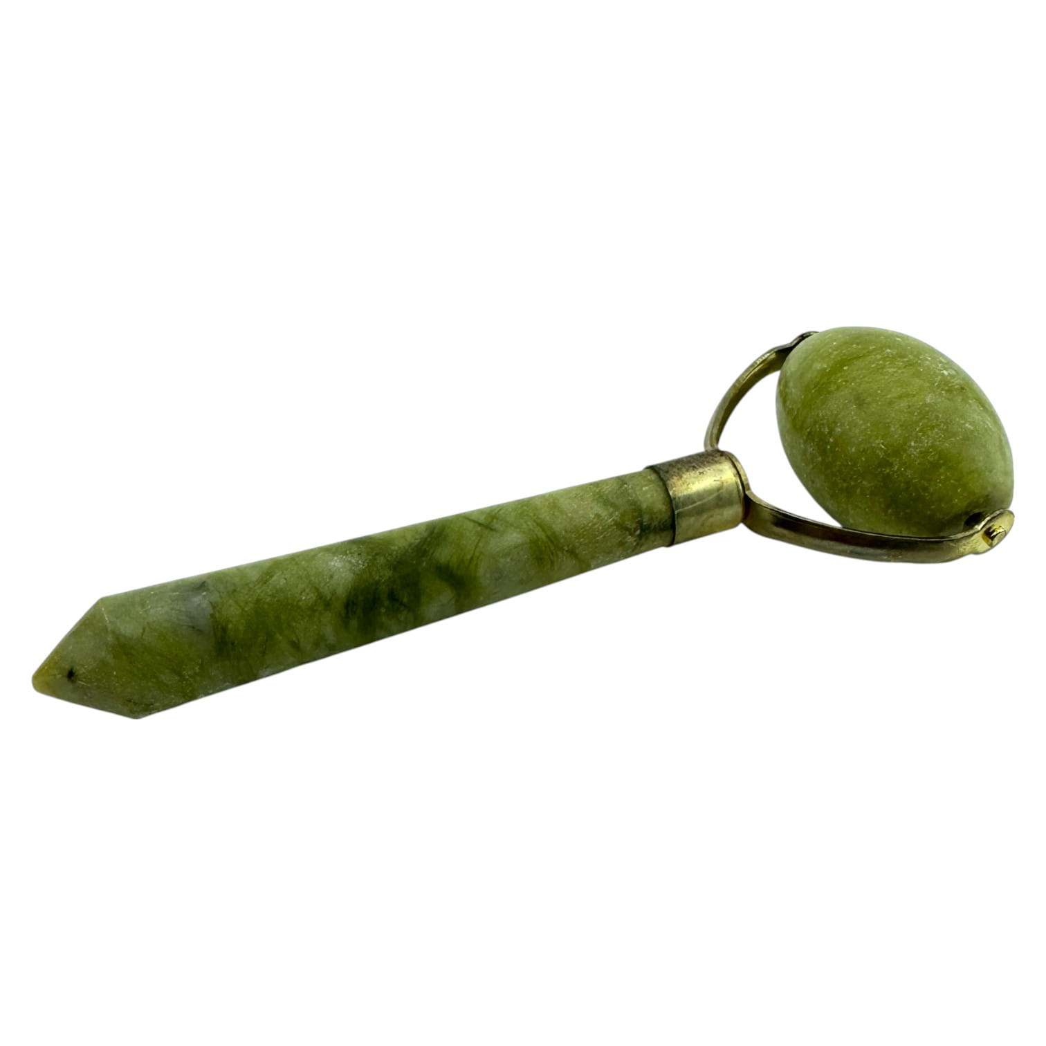 Нефритовый массажёр с овальным валиком — это стильный и эффективный инструмент для ухода за кожей тела и лица. Изготовлен из натурального нефрита, известного своими охлаждающими и успокаивающими свойствами. Благодаря удобной гранёной ручке массажёр легко лежит в руке, а металлические крепления обеспечивают прочность и долговечность конструкции.
