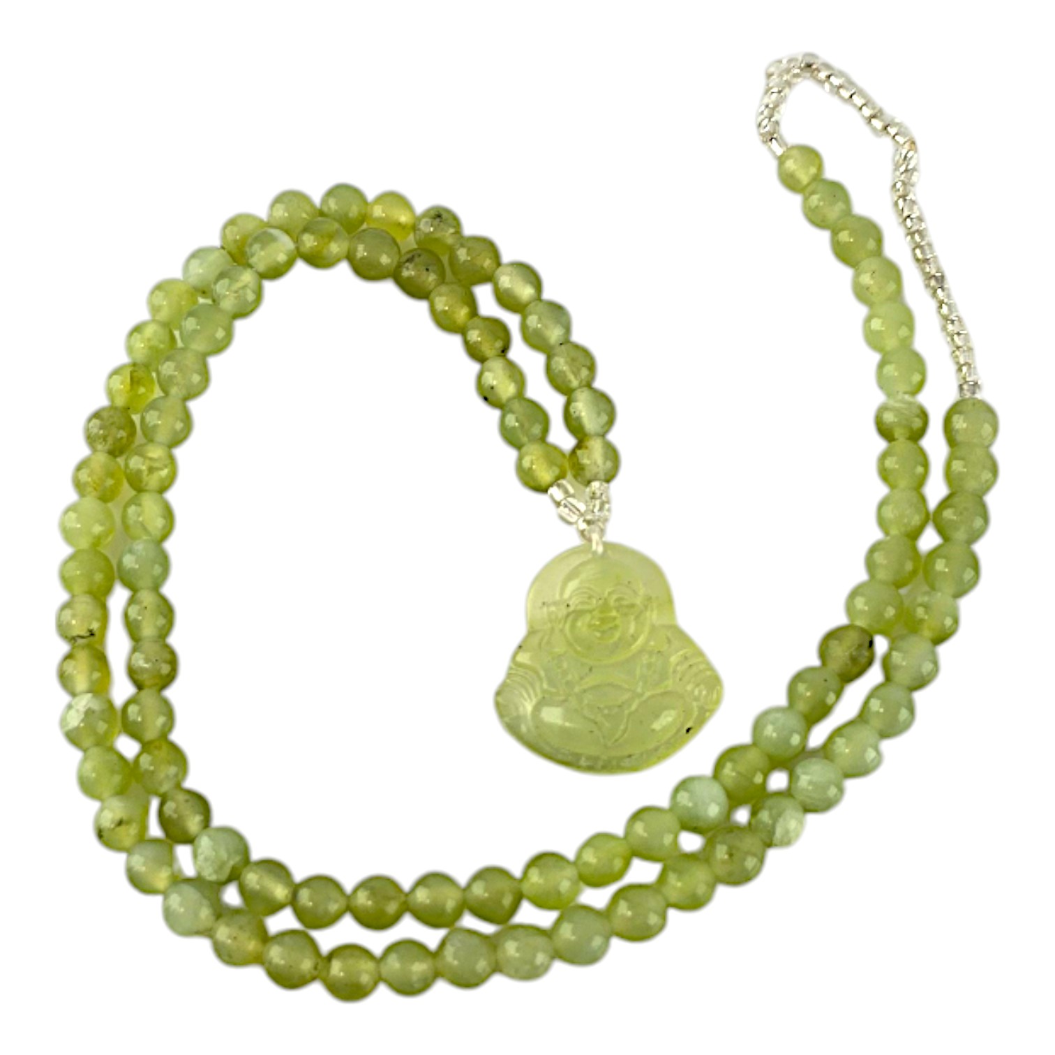 Это ожерелье идеально подходит для ежедневного ношения или особых случаев. Кулон виде Будды, привнесет в ваш образ силу и уверенность, а нежные нефритовые бусины добавят изысканности и утонченности.