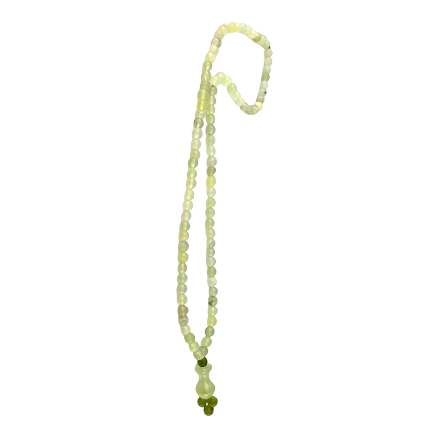 Это изысканное ожерелье изготовлено из нефрита, одного из самых почитаемых и ценных камней в китайской культуре. Нефрит символизирует мудрость, спокойствие и гармонию, и на протяжении веков используется как амулет для защиты и привлечения удачи.