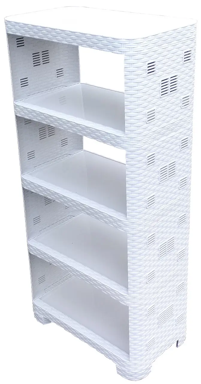 Этажерка для обуви и других вещей на 5 полок в стиле Ротанга. Выполнена из высококачественного прочного пластика и предназначена для хранения различных предметов на кухне, в ванной или в прихожей. На кухне в ней можно хранить посуду и кухонные принадлежности, в ванной - различные ванные принадлежности, а в коридоре - разнообразные аксессуары
