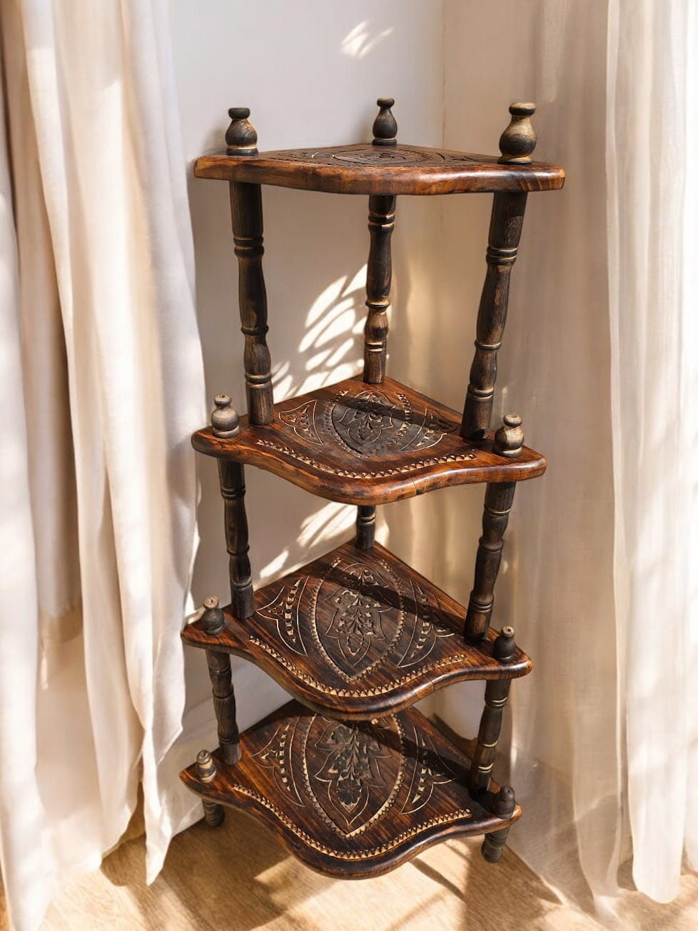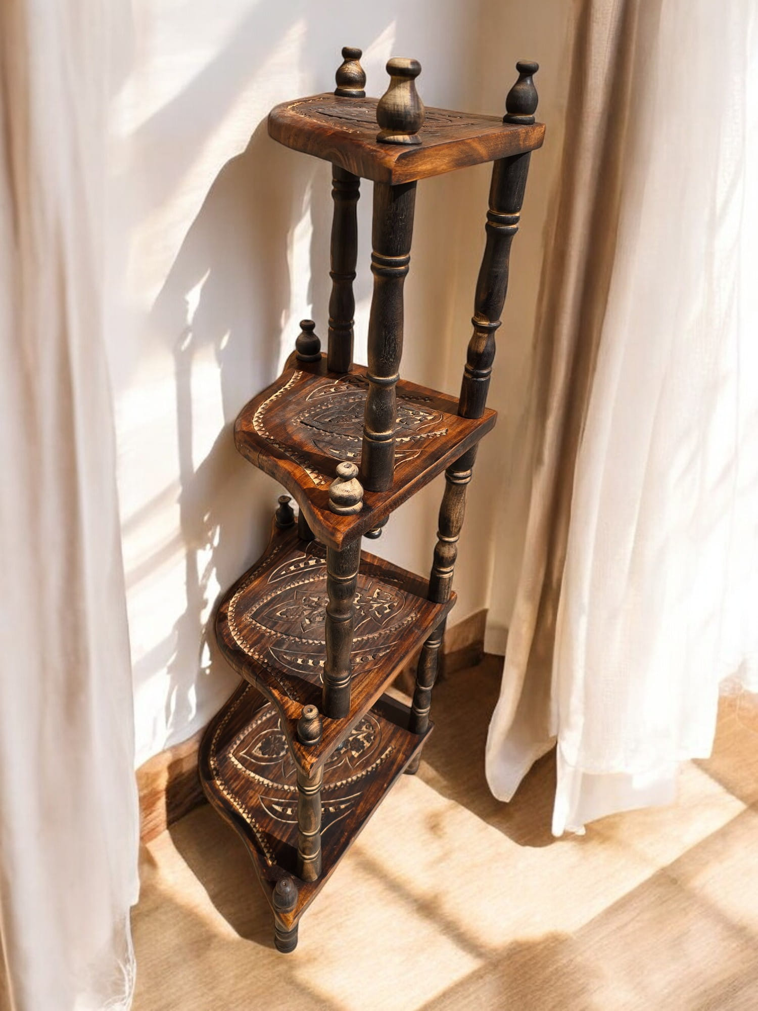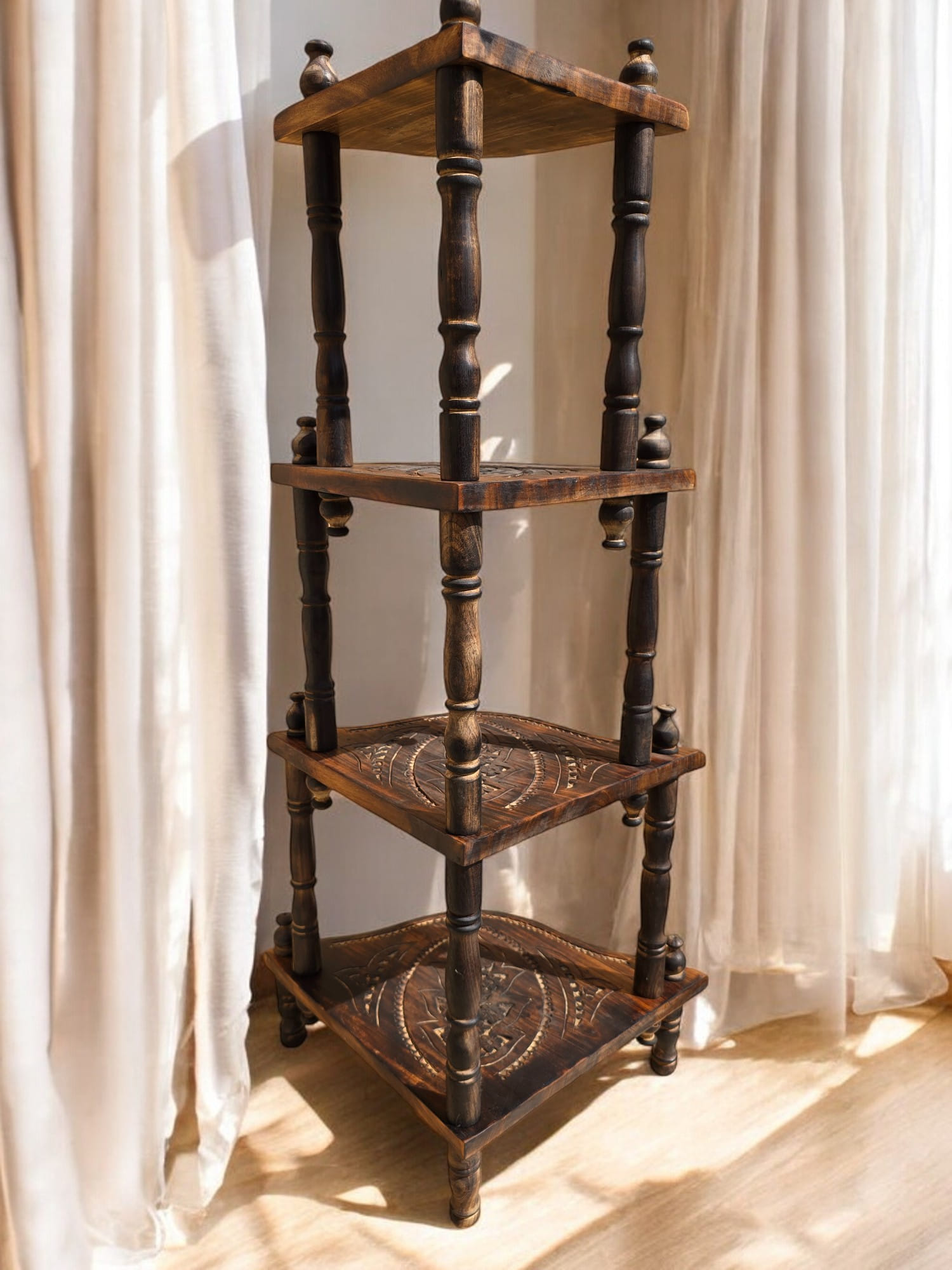 Эта этажерка станет не только практичным, но и декоративным решением для вашего дома или офиса, добавив нотку природного стиля и элегантности в ваше пространство.