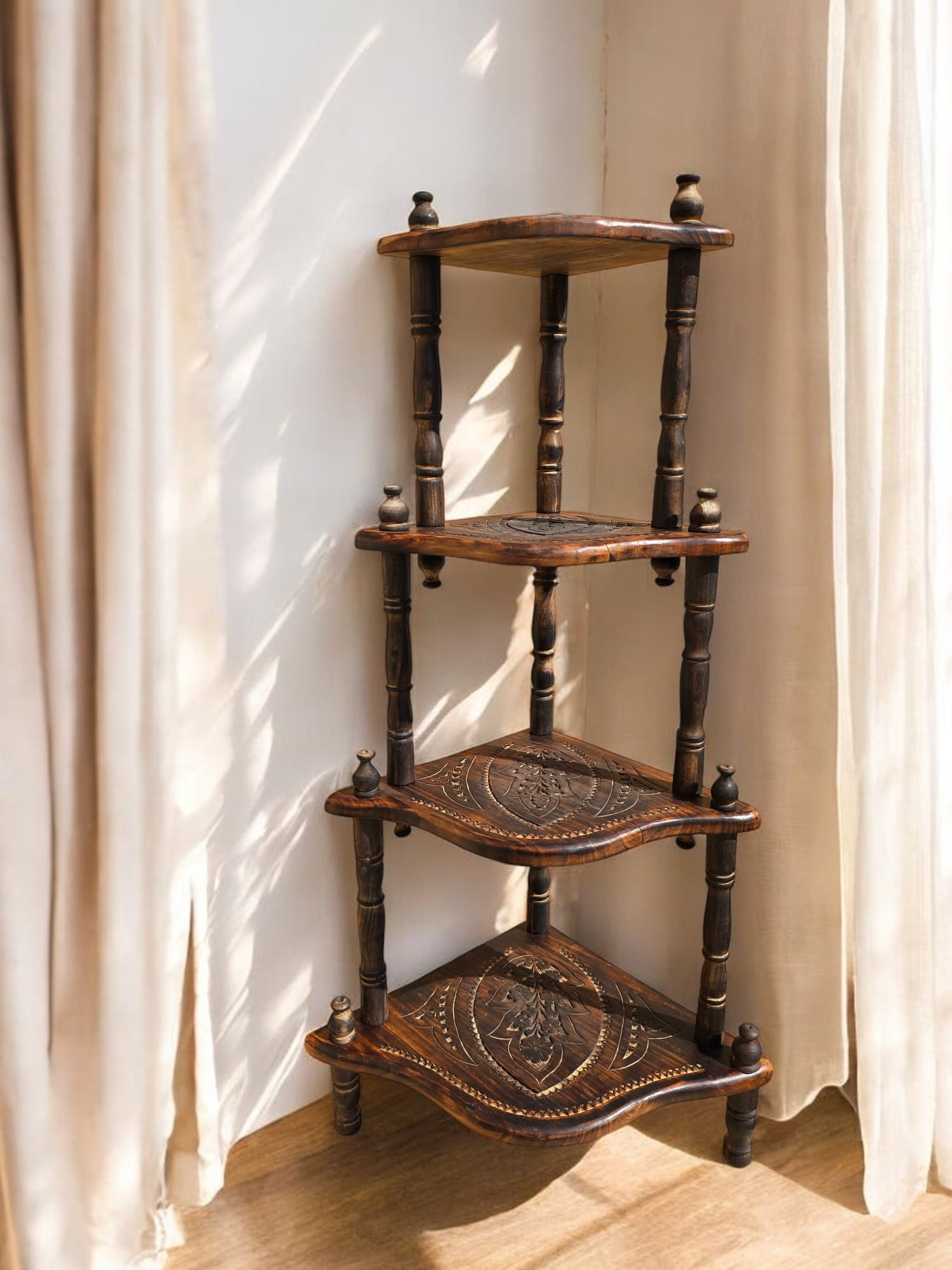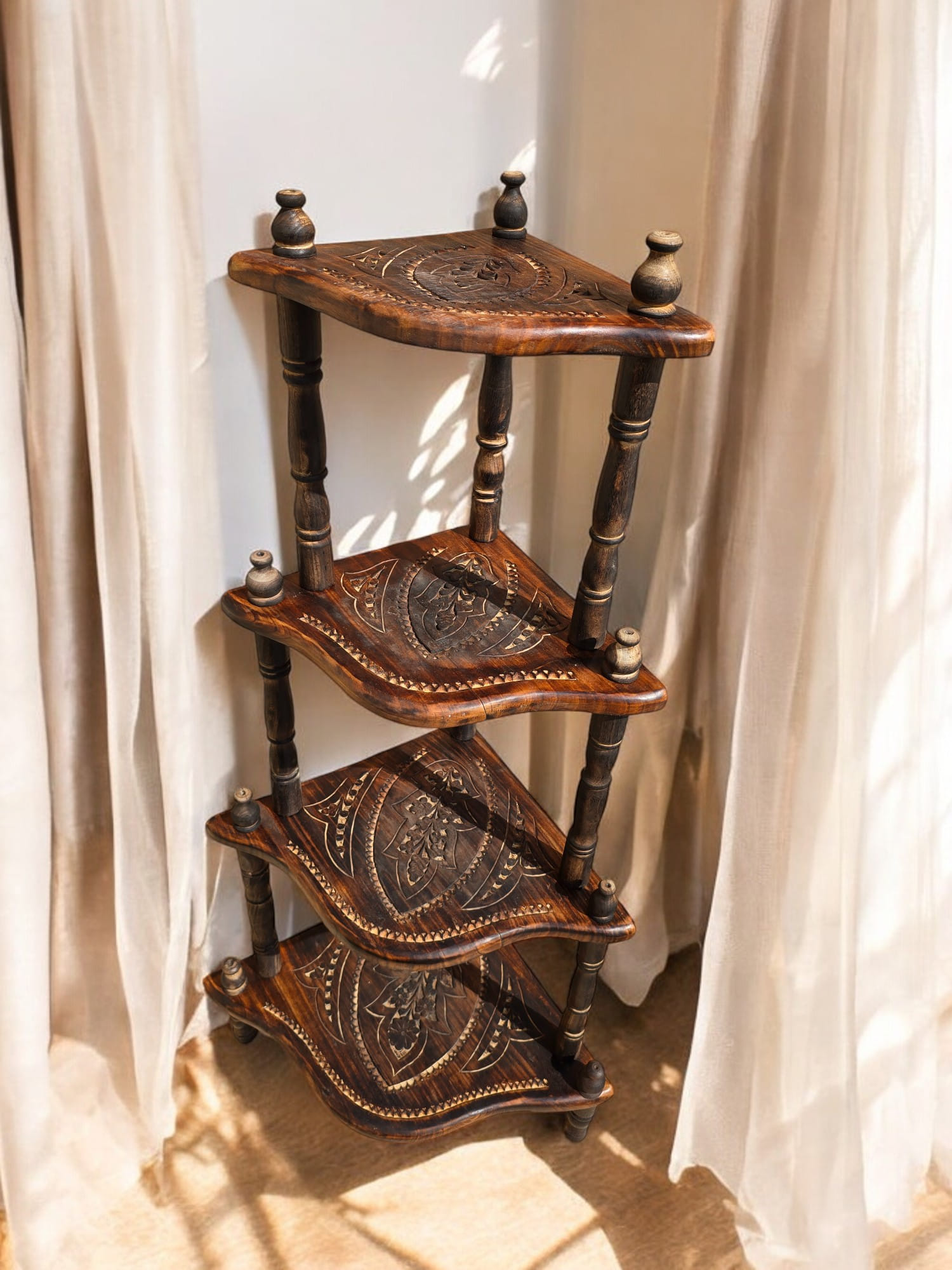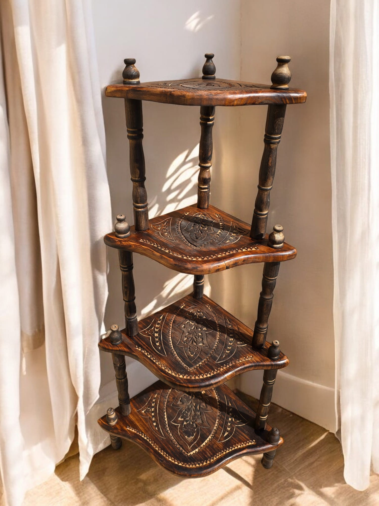 Этажерка из мангового дерева на 4 полки — стильный и функциональный элемент для вашего интерьера. Эта мебель выполнена из прочного и экологичного мангового дерева, что придает ей уникальный вид и долговечность. Естественная текстура древесины добавляет тепла и уюта в любое пространство.