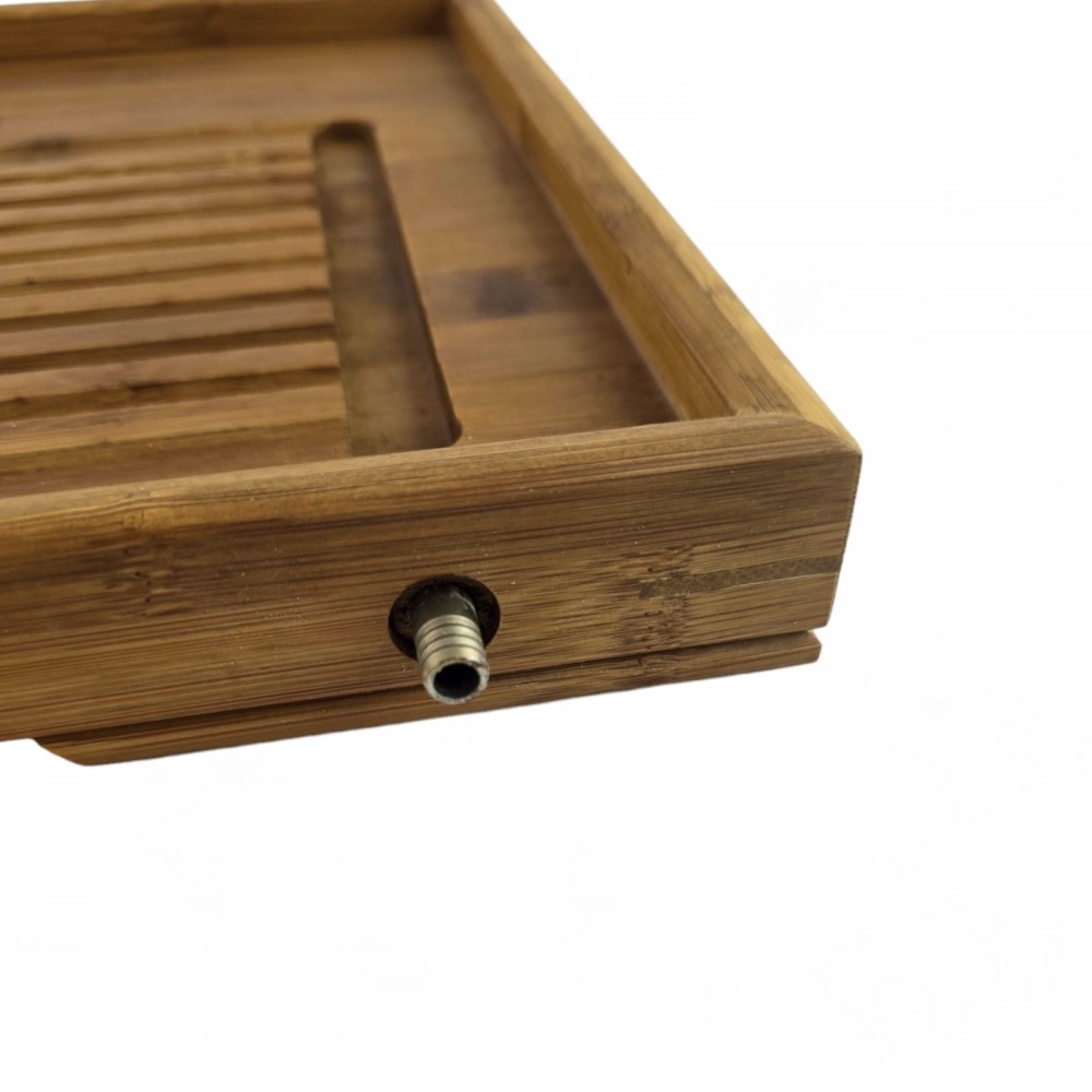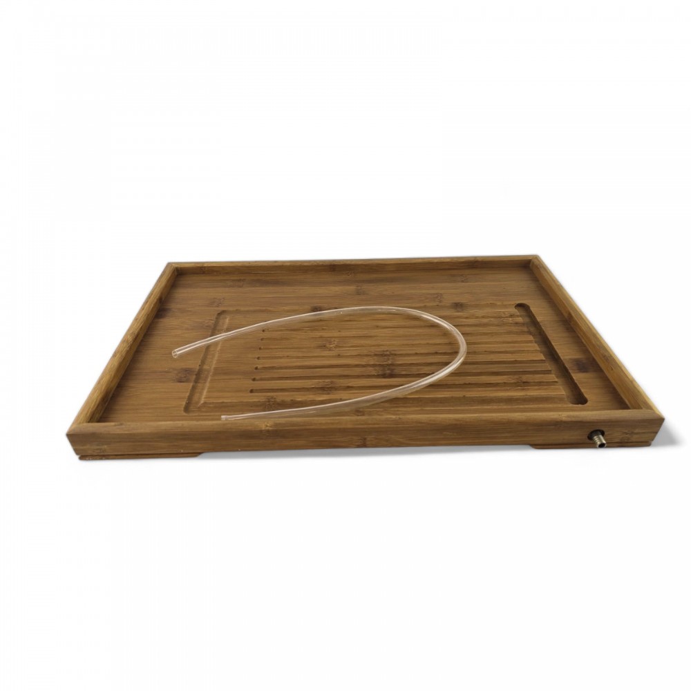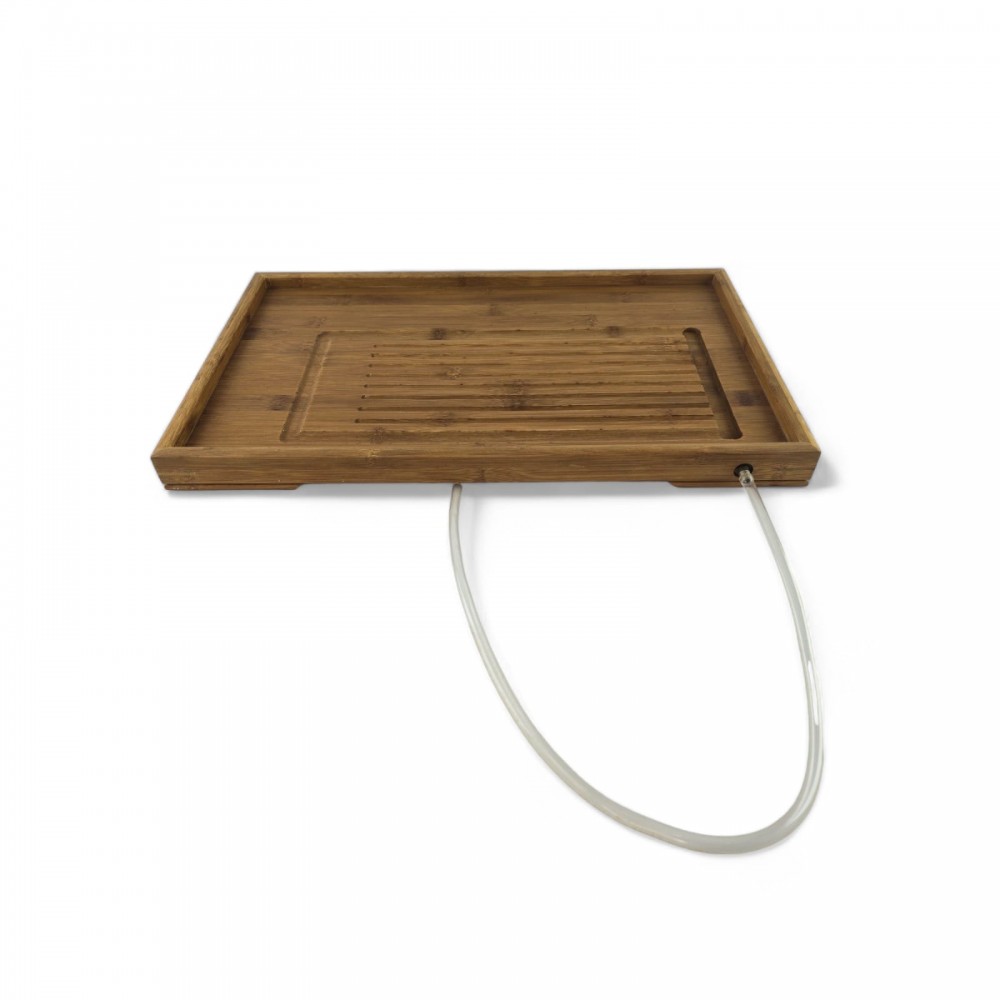 Чабань – это неотъемлемый элемент китайской чайной церемонии, придающий ей аутентичность и функциональность. В ходе чайной церемонии, посуда омывается кипятком, а вся влага собирается в специальных выемках столика, направляясь к отверстию со шлангом, сохраняя чистоту и порядок.