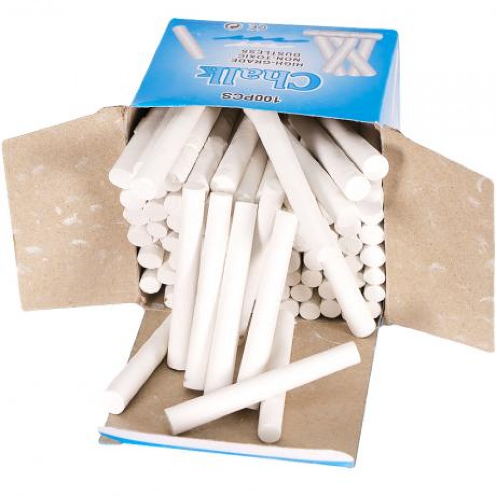 Біла кругла крейда, 100 штук В упаковці, "Китай". Крейда використовується для малювання і письма на асфальті, на великій дошці (наприклад, в школах) для загального огляду.