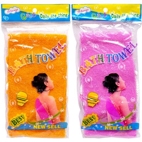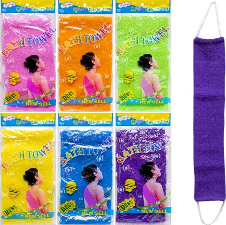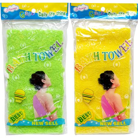 Мочалка жорстка з ручками. Використовується для миття тіла, володіє активним пілінговим дією, тонізуючи, масажуючи і ефективно очищаючи вашу шкіру. Домішка жорстких синтетичних волокон посилює масажну дію на шкіру. Для зручності забезпечена двома ручками. Завдяки злущування ефекту мочалки, шкіра звільняється від відмерлих клітин, стає гладкою, пружною і свіжою. Стимулює кровообіг, активує кровопостачання, сприяє обміну речовин, що в свою чергу дозволяє себе почувати бадьорим і відпочилим після прийняття душу або ванни. Регенерує шкіру, робить її приємно ніжною, м'якою і краще готової до прийняття косметичних засобів. Розміри: довжина масажного полотна - 51 см, ширина масажного полотна - 11 см