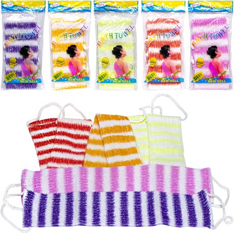 Мочалка жорстка з ручками. Використовується для миття тіла, володіє активним пілінговим дією, тонізуючи, масажуючи і ефективно очищаючи вашу шкіру. Домішка жорстких синтетичних волокон посилює масажну дію на шкіру. Для зручності забезпечена двома ручками. Завдяки злущування ефекту мочалки, шкіра звільняється від відмерлих клітин, стає гладкою, пружною і свіжою. Стимулює кровообіг, активує кровопостачання, сприяє обміну речовин, що в свою чергу дозволяє себе почувати бадьорим і відпочилим після прийняття душу або ванни. Регенерує шкіру, робить її приємно ніжною, м'якою і краще готової до прийняття косметичних засобів. Розміри: довжина масажного полотна - 51 см, ширина масажного полотна - 11 см