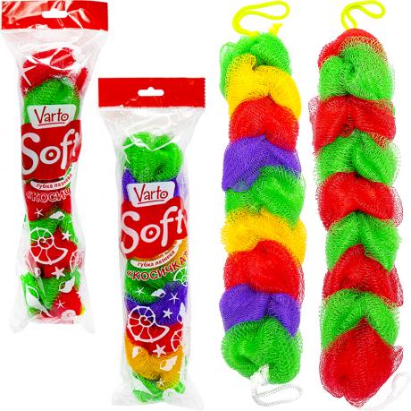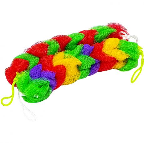 Плетена мочалка "Косичка" виготовлена з різноколірних нейлонових смуг. Має зручні ручки з обох боків. Ергономічна форма дозволяє легко використовувати її для миття спини.