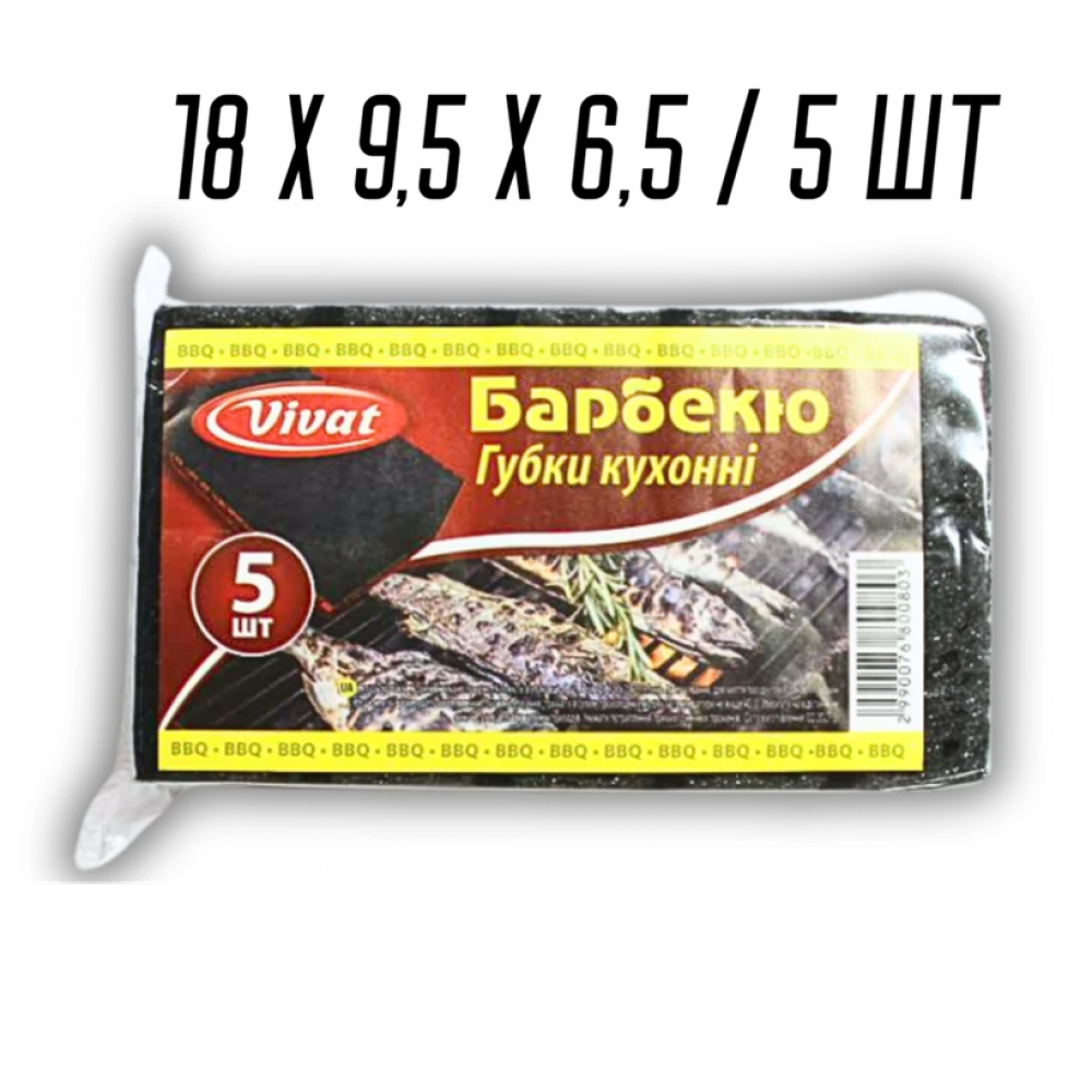 Губка кухонная поролоновая двусторонняя для посуды Барбекю 5шт/18х9,5х6,5см