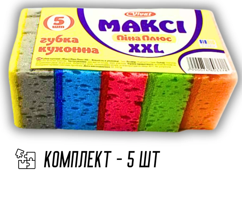 Губка кухонная поролоновая двусторонняя для посуды Макси XXL Пена Плюс 5ш/18х9,5х6,5см