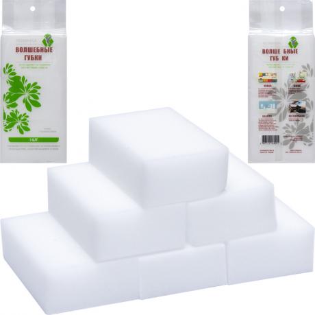 Меламінова губка складається Із меламінової гуми - пластика нового покоління, який, подібно ластику, чистить стійкі забруднення на твердих поверхнях без застосування хімічних засобів. В результаті використання меламінова смола перетворюється на піну, її мікроструктура стає майже такою ж твердою, як скло. Це перетворення дає меламіновою губці такі ж абразивні переваги, якими володіє наждачний Папір. Завдяки особливій структурі змочена водою губка видаляє бруд і вбирає її. Меламінова губка дбайливо очистить бруд з твердих поверхонь навіть чорнило перманентного маркера, не залишивши слідів, розлучень і подряпин. Меламінова губка стирає дитячі малюнки, сліди від олівців і маркерів, чорнило, плями, розводи з підлоги, стін, скла, дзеркал, дверей, різних предметів інтер'єру та побутової техніки, видаляє бруд, вапняк, мильні розводи у ванній і дбайливо чистить будь-які поверхні. Обов'язково намочіть перед використанням і акуратно відіжміть. Склавши губку між долоньками. При протиранні необхідно терти куточком губки, а не все поверхонь, так губка прослужить набагато довше. При забрудненні у губки змінюється структура поверхні - вона втрачає властивість активної очищення і стає крихкою. При використанні губка повинна зменшаться в Розмірах і стиратися. Тому якщо ви використовуєте її як ластик (тобто трёте куточком) вона буде стиратися, а якщо трёте всією поверхнею вона буде кришитися. Не використовуйте губку для поверхонь, які будуть стикатися з продуктами Живлення . Розмір губки: 9х6х3 см.Ціна за 3 штуки