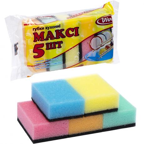 Губка для миття посуду "Максі" №5 підходить для очищення посуду, столових приладів та різних поверхонь. Вона може вбирати миючий засіб і рівномірно його розподіляти, що дозволяє економно використовувати миючі засоби. Розмір губки становить 8,5 см на 6 см на 3 см.