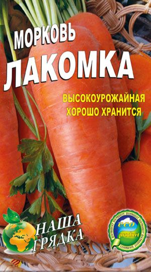 Морковь Лакомка Ультраскороспелый сорт периодот полных всходов до технической спелости 65-75 дней). Корнеплоды цилиндрические, выравненные, длиной 16-18 см, ярко-оранжевые, с маленькой сердцевиной, очень нежной и сочной мякотью, отменного вкуса.Выращивается в различных климатических зонах. Семена моркови прошли предпосевную обработку и проверку на всхожесть Семена соотвествуют ДСТУ 2242-93