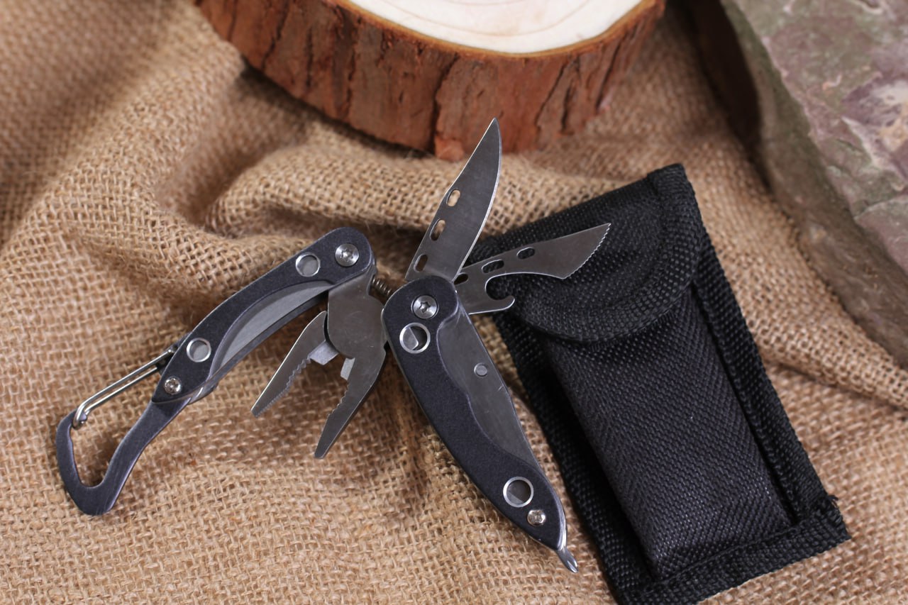 Мультитул является универсальным инструментом, сочетающим в себе массу полезных функций для выполнения различных задач. Такой инструмент обязательно пригодится в машине, гараже, походе, кемпинге, на охоте или рыбалке, а также на дачном участке или пикнике. Он компактен и не займет много места в вашем туристическом снаряжении или багаже. В комплекте есть удобный чехол для хранения и переноски инструмента. Включает 7 функций: 1. плоскогубцы игольчатые 2. плоскогубцы внутренние 3. кусачки для проволоки 4. нож 5. отвертка крестовая 6. отвертка плоская 7. карабин Изготовлено: коррозионностойкая (нержавеющая) сталь, алюминий, эмалевое покрытие. Чехол из синтетического материала (состав: 100% нейлон). Размер: в сложенном виде 8,5х3х1,5 см, в разложенном виде 12х7,5х1,5 см. Количество в ящике 240 шт