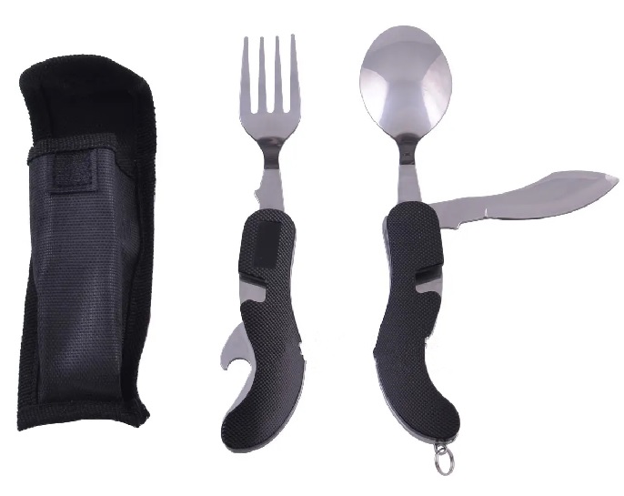 Складной туристический нож, ложка, вилка, штопор, открывалка (120шт/ящ) №706ALL black