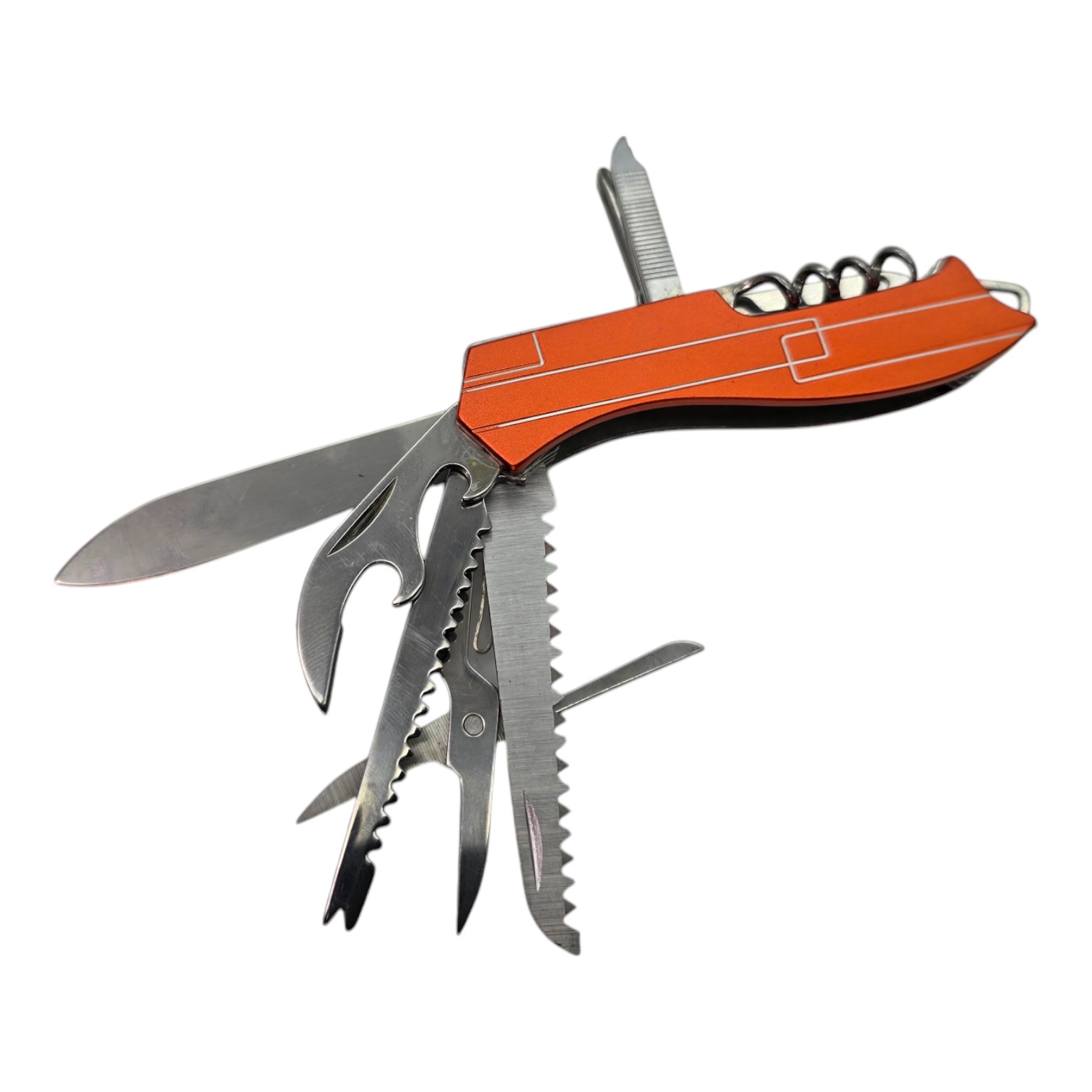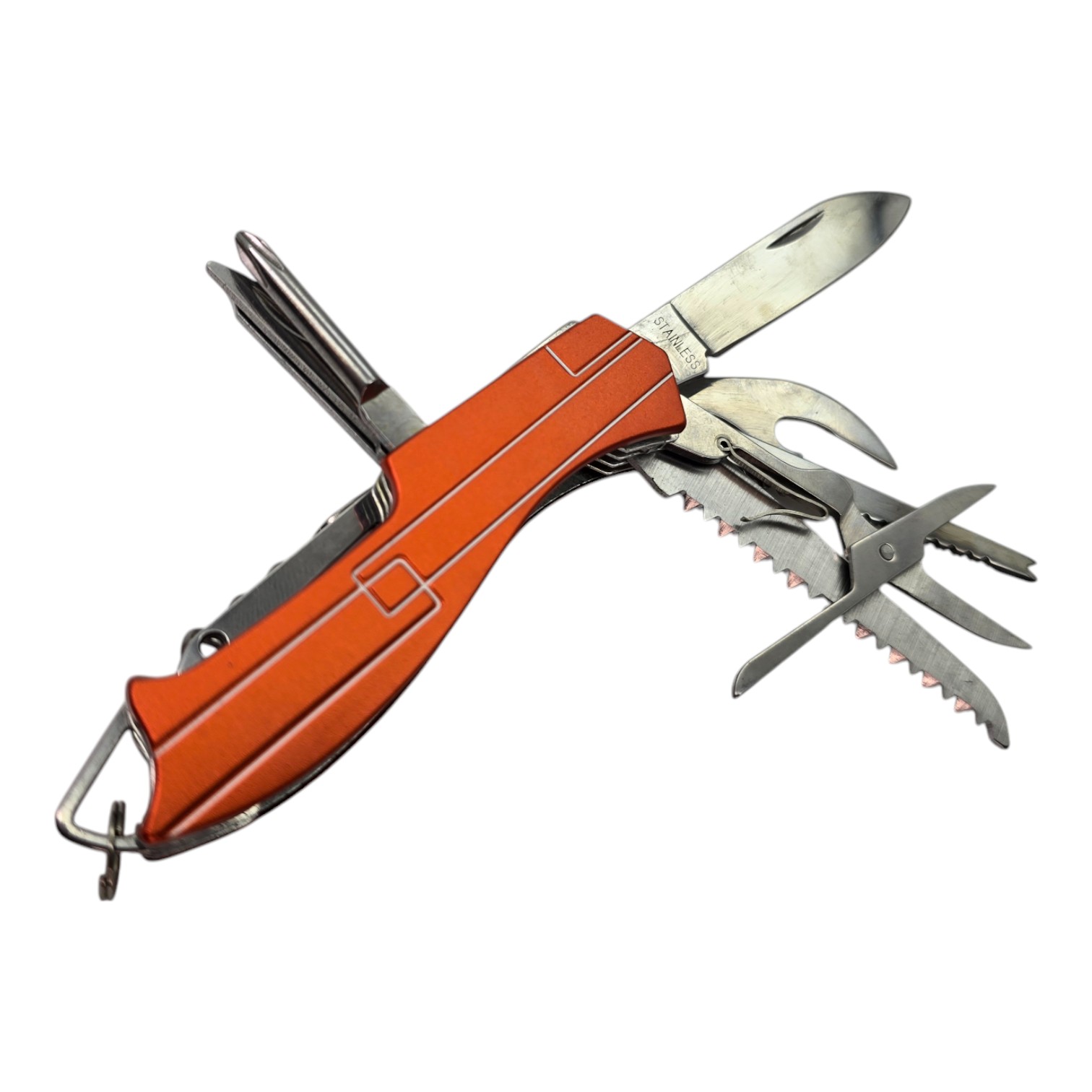 Нож складной с набором инструментов мультитул оранжевый (10 в 1)(9,5 см)