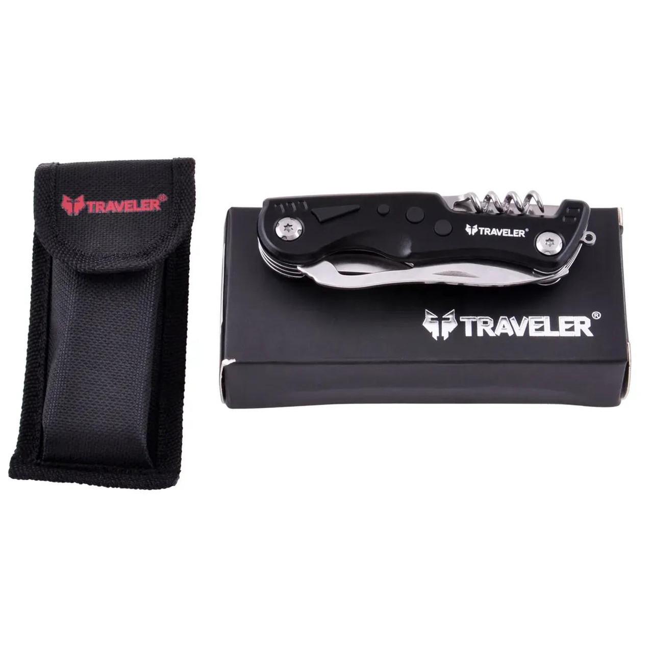 Мультитул туристический с чехлом и карабином Traveler Deluxe 7в1, 12 см МТ821