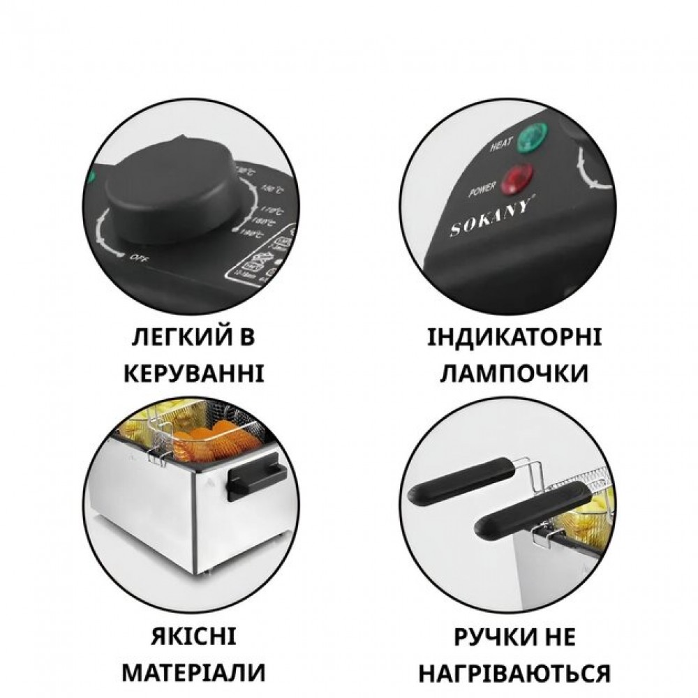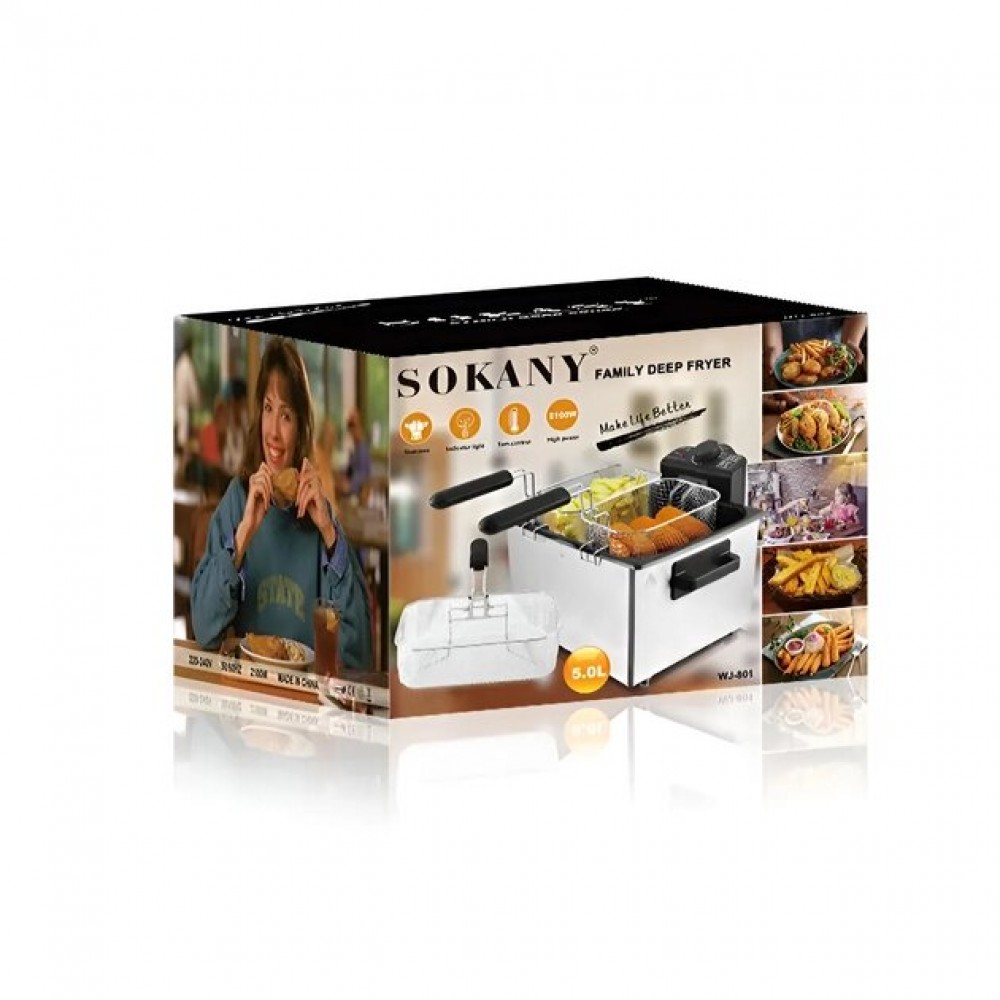 Фритюрница SOKANY WJ-801 мультипечь электрическая 5 л 2100 Вт до 190 С защита от перегрева