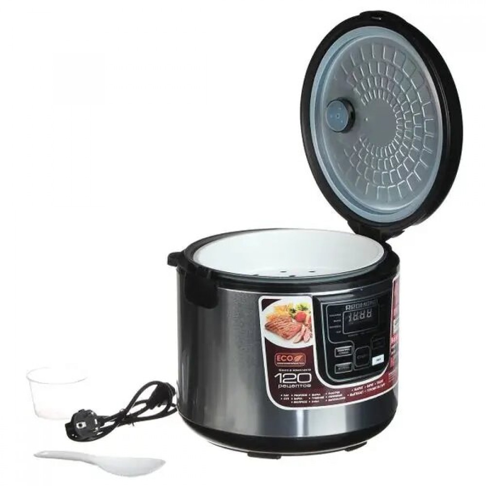- Режимы: выпечка, рис/плов варка, экспресс, суп, разогрев, пар, выпечка/хлеб, стерелизация, каша, тушение, жарка.