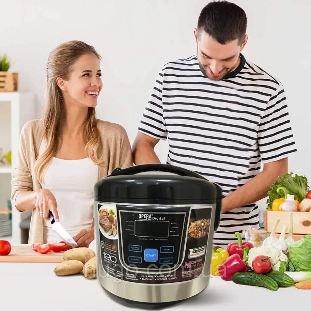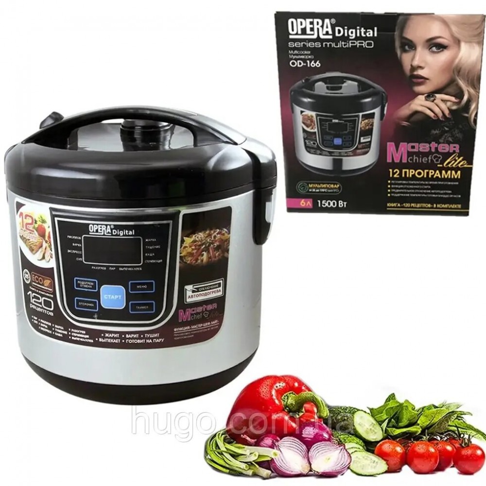 Мультиварка Opera OD-166 – это простая и понятная кухонная техника, которая предназначена для готовки блюд различными способами обработки. Управление электронное и очень простое для каждой программы существует собственная кнопка, информация, а также часы отображаются на дисплее. Обучиться управлению мультиваркой не составит труда даже людям с минимальным опытом в использовании данной бытовой техники. Ее основное преимущество и главная отличительная особенность – наличие 12 программ. Она может приготовить тушенное мясо, рыба, овощи, рис, макароны, картовфель, различную выпечку.