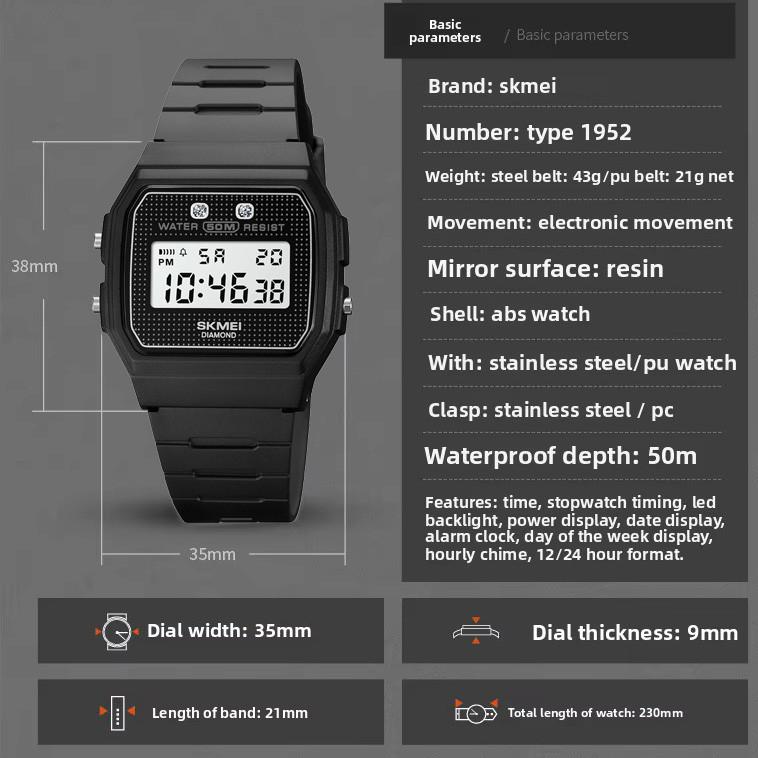 Часы наручные 1952PBK SKMEI, BLACK-PU BELT